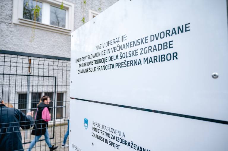 Osnovna šola Franceta Prešerna v Mariboru, ki jo skupaj s podružnico obiskuje 720 otrok, je v okviru 2,3 milijona evrov vredne naložbe dobila novi telovadnico in večnamensko dvorano ter na novo urejene zunanje površine.