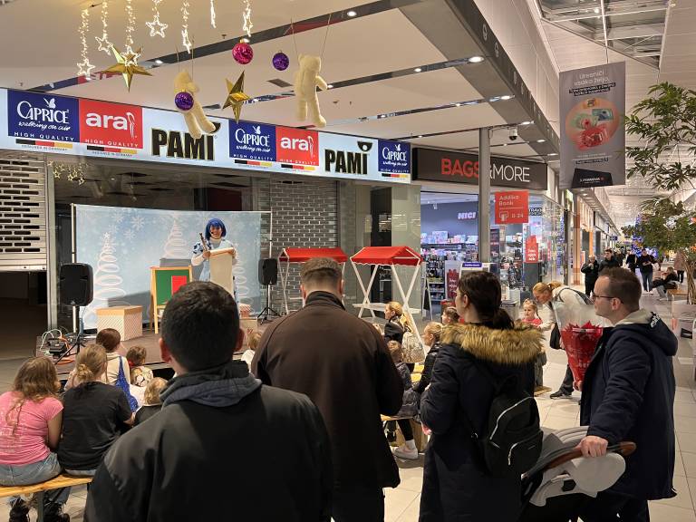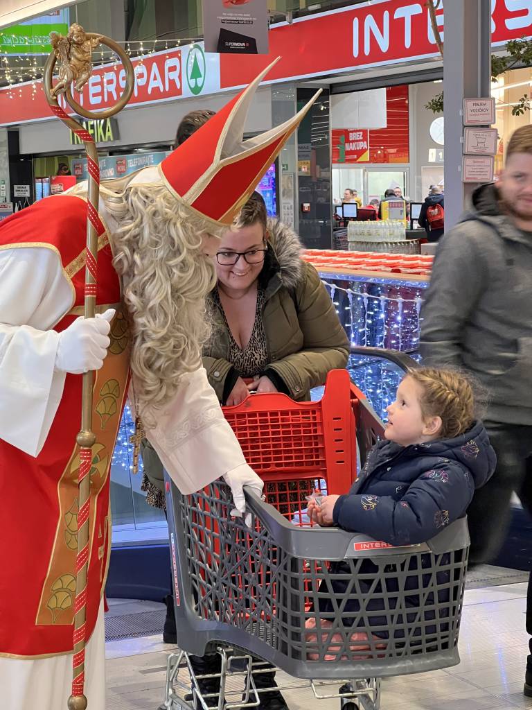 Otroci so Miklavža pozdravili z navdušenjem, dogodek pa je poskrbel za čarobno vzdušje, ki je napolnilo nakupovalni center.