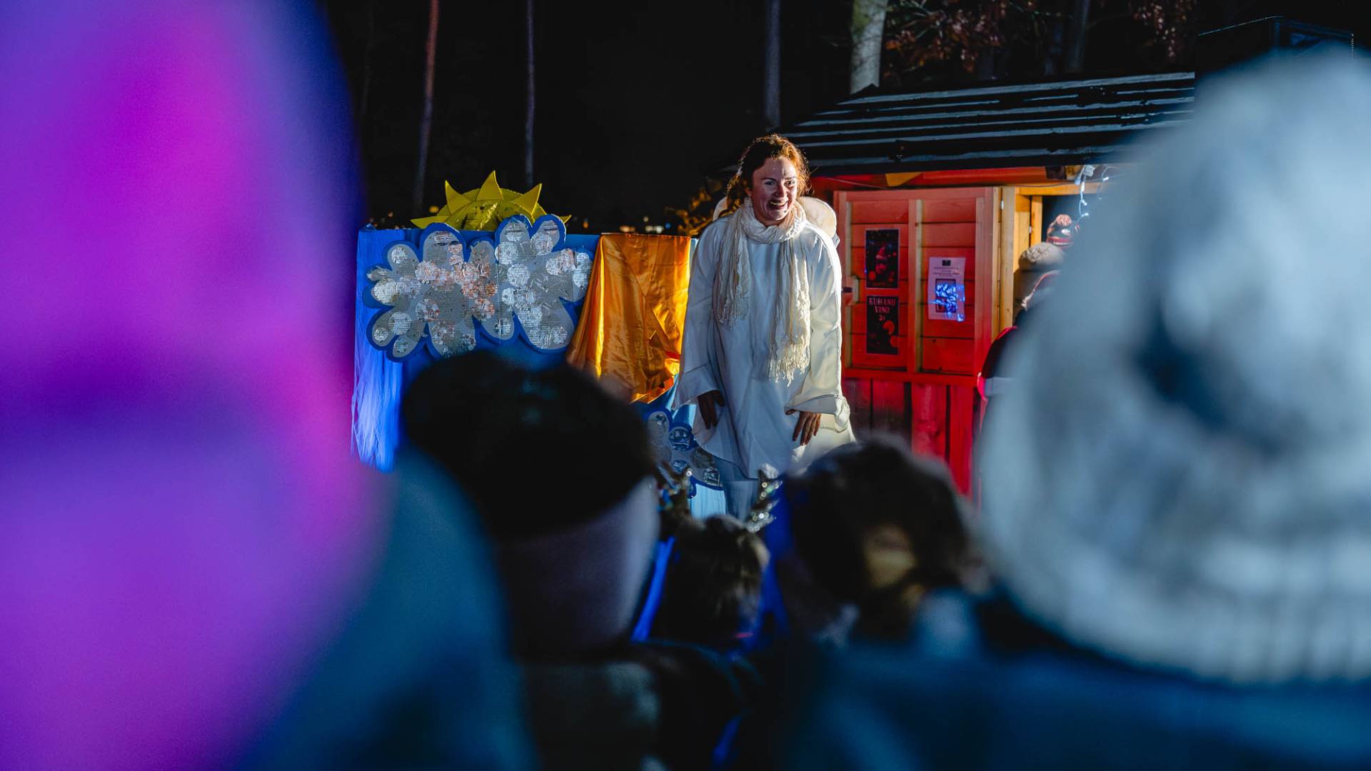 Najmlajši so se sprehodili skozi pravljični gozd, obiskali drevo dobrih misli in praznično čitalnico ter se fotografirali v posebnem foto kotičku, kjer jih je že pričakal Miklavž.
