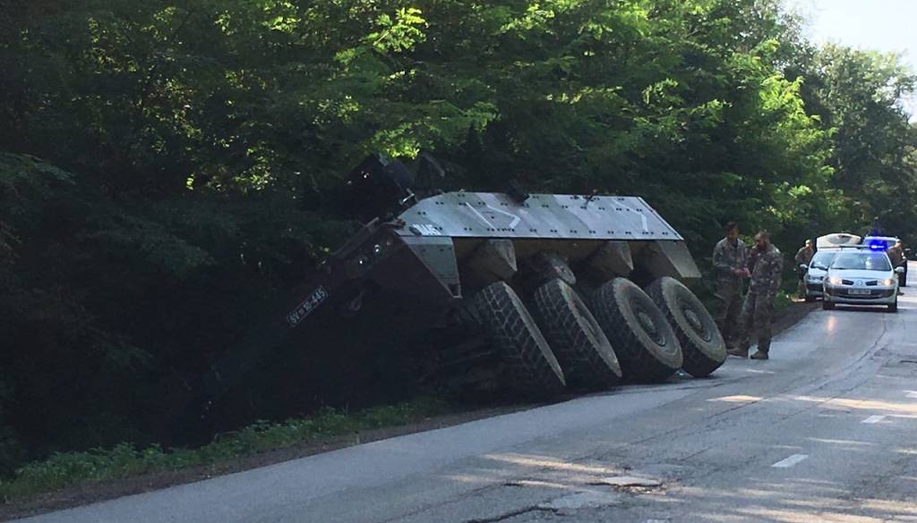 Iz Murske Sobote poročajo o nenavadnem dogodku. Na cesti Markišavci - Murska Sobota je v jarku končal 30-tonski vojaški oklepnik Patria.