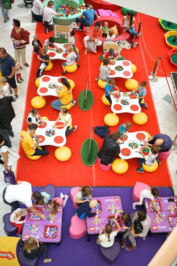 Preizkusijo se lahko v sestavljanju kreativnih skulptur iz rdečih kock in najvišjega stolpa, tekmujejo lahko v »Lego ribarjenju« in sestavljanju kock Lego technic. Poleg otrok se lahko s sestavljanjem pozabavajo tudi starši.
