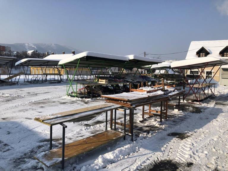 Na jutro, v katerem je še ob 8. uri v Mariboru kazalo -17 stopinj Celzija, smo se preverili utrip na mariborski mestni tržnici. Naleteli smo na prazno tržnico, obratuje le mesarija v notranjih prostorih in kiosk ob steni, kjer prodajajo plastične vrečke. Mraz je za branjevke, predvsem pa za njihove pridelke, prehud.