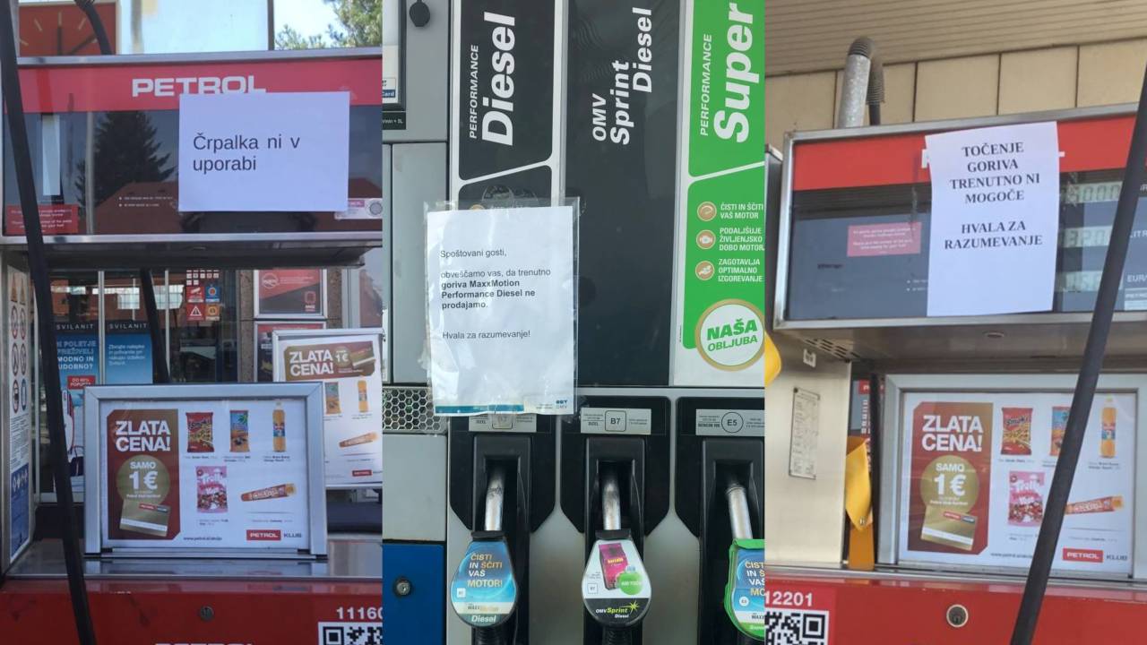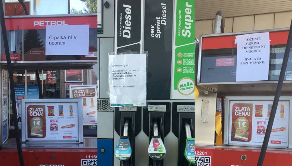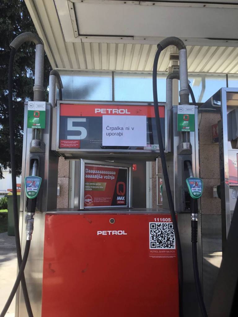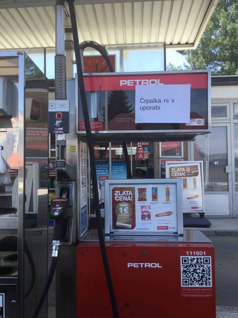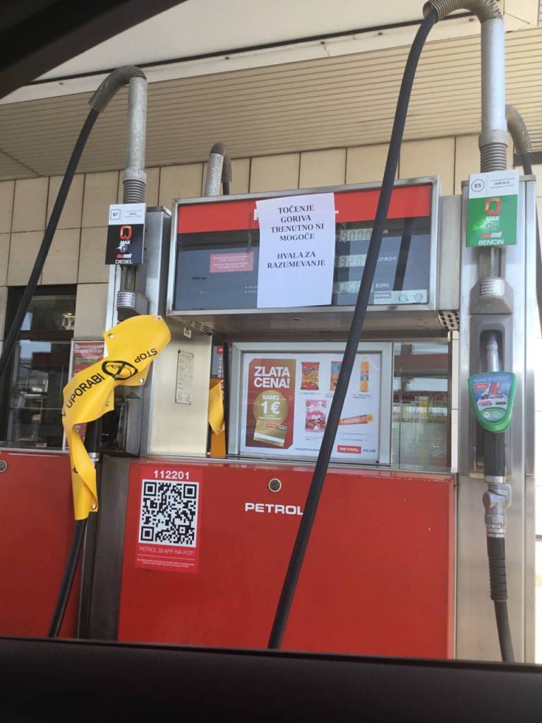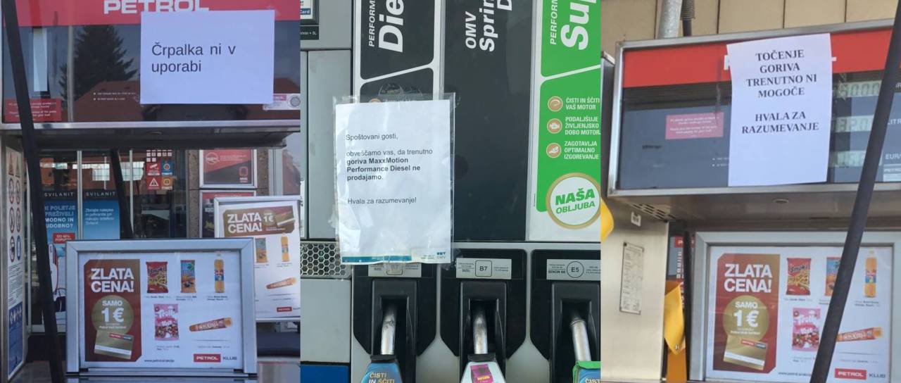 Na Petrolu na Ptujski cesti ni bilo mogoče tankati ne dizla in ne bencina. »Točenje goriva trenutno ni mogoče,« so zapisali na listu na bencinski črpalki.