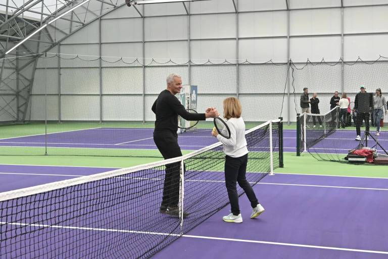To sta kot prva preizkusila Mima Jaušovec in Saša Arsenovič, za njima sta se v teniškem dvoboju pomerila še Polona Hercog in Blaž Rola.