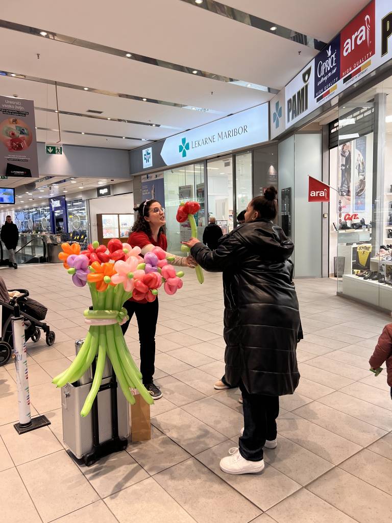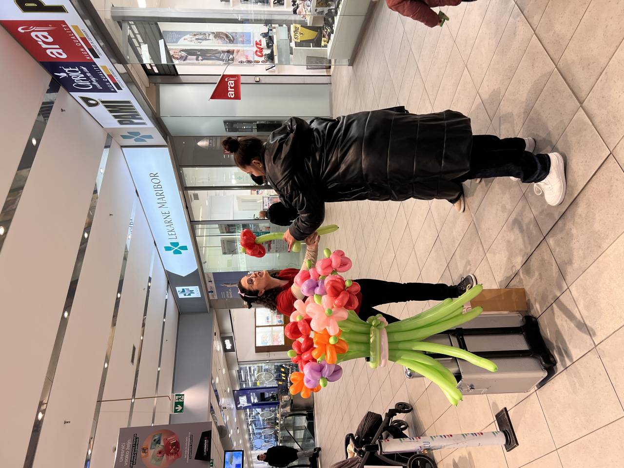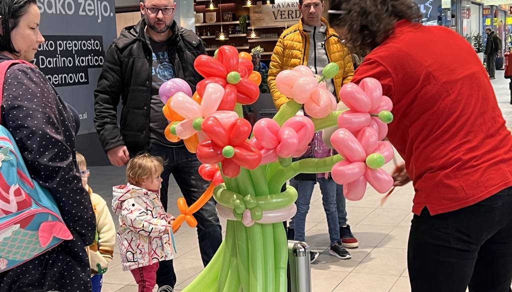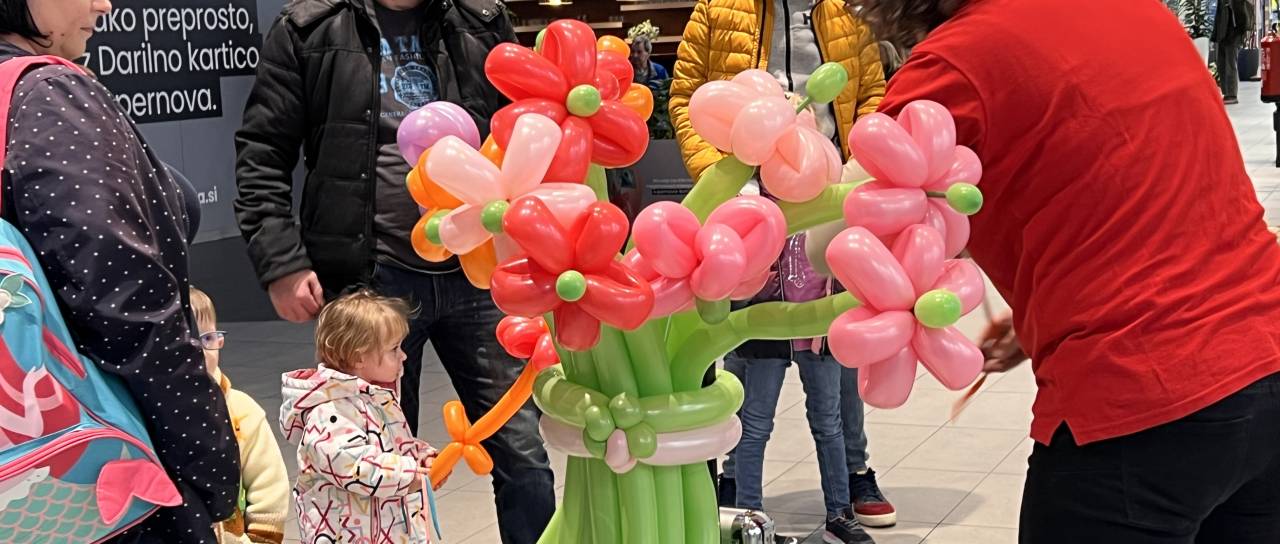 Namesto klasičnih cvetlic, so se v zraku razprostirali barviti baloni, oblikovani v podobi cvetov, ki so jih izdelale spretne roke animatork.