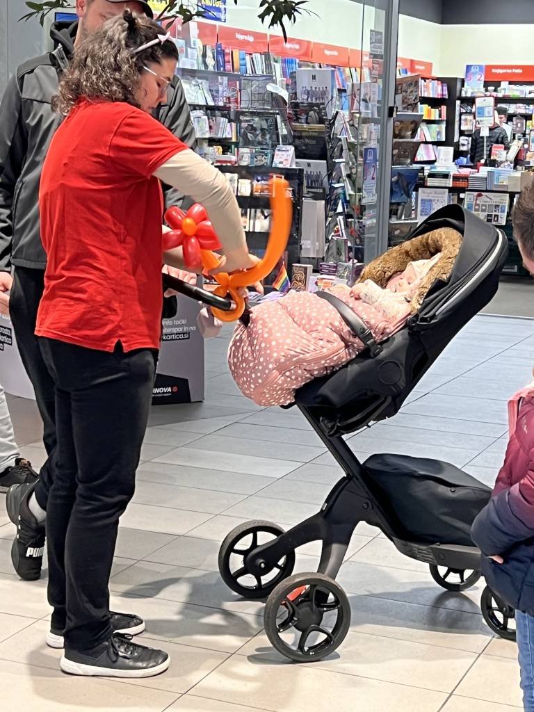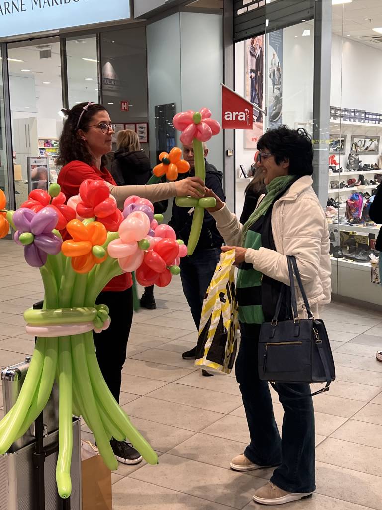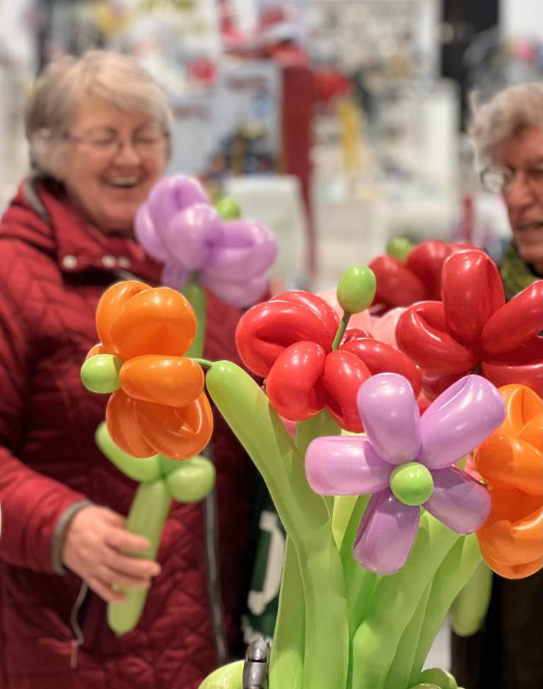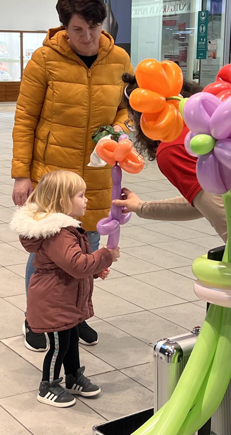 Namesto klasičnih cvetlic, so se v zraku razprostirali barviti baloni, oblikovani v podobi cvetov, ki so jih izdelale spretne roke animatork.