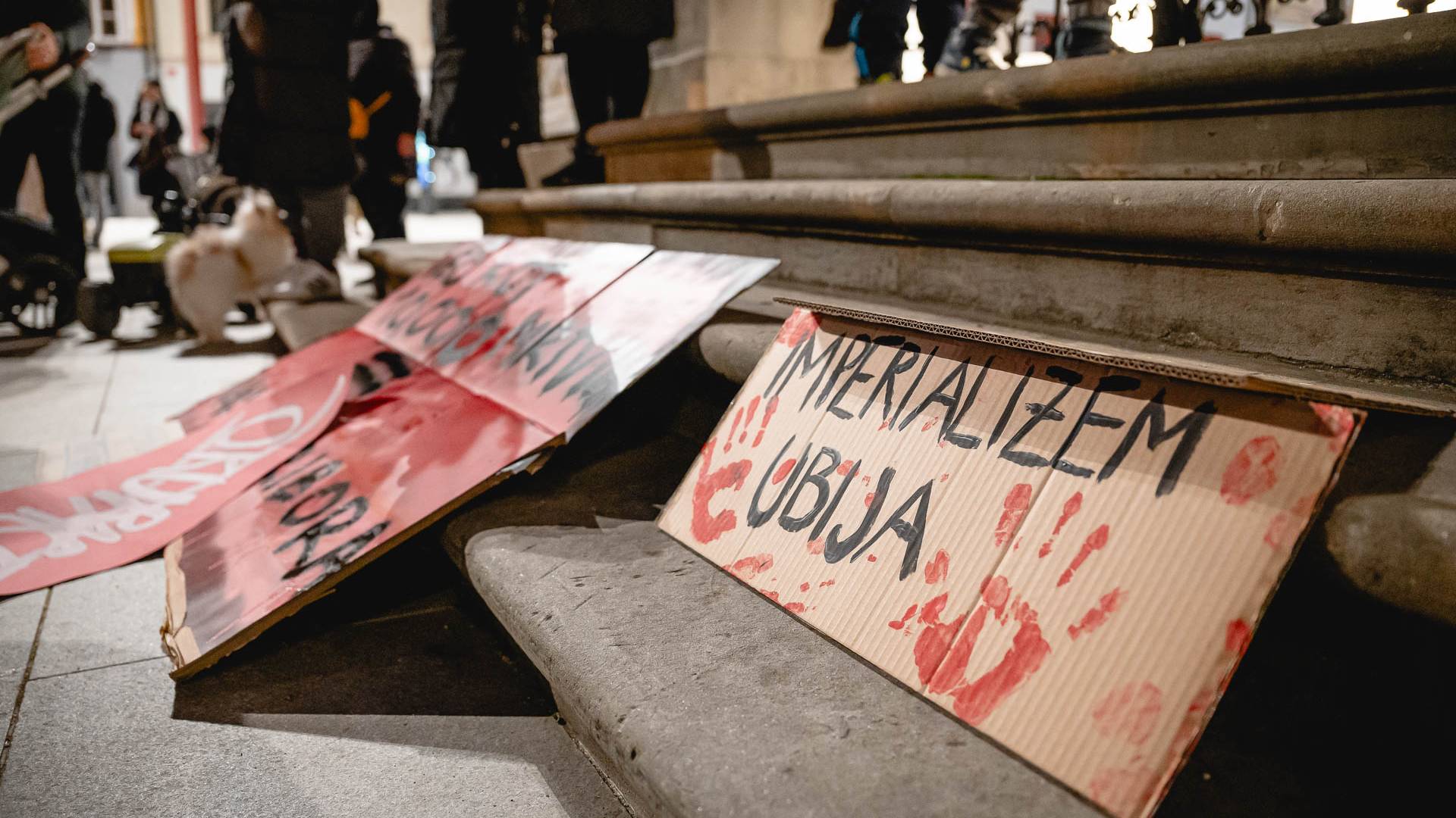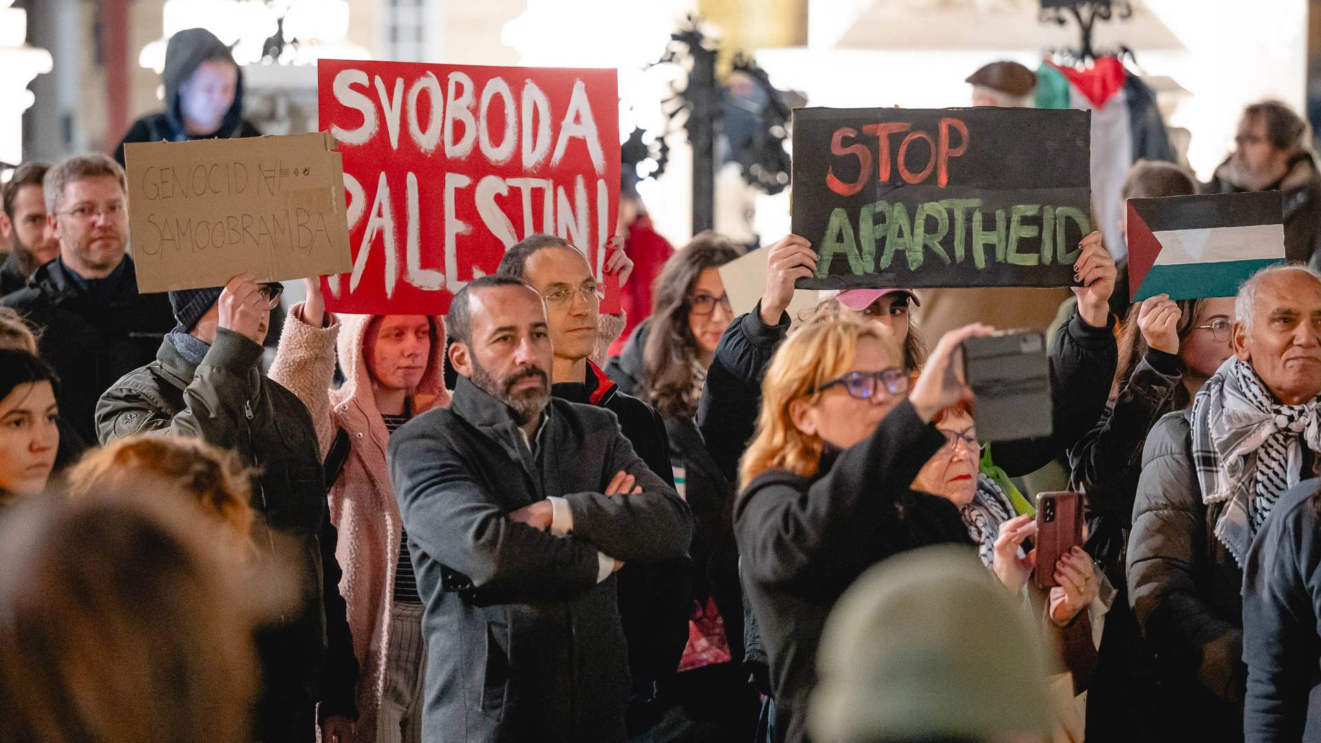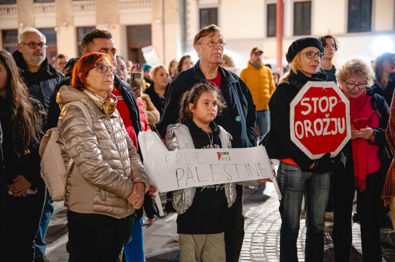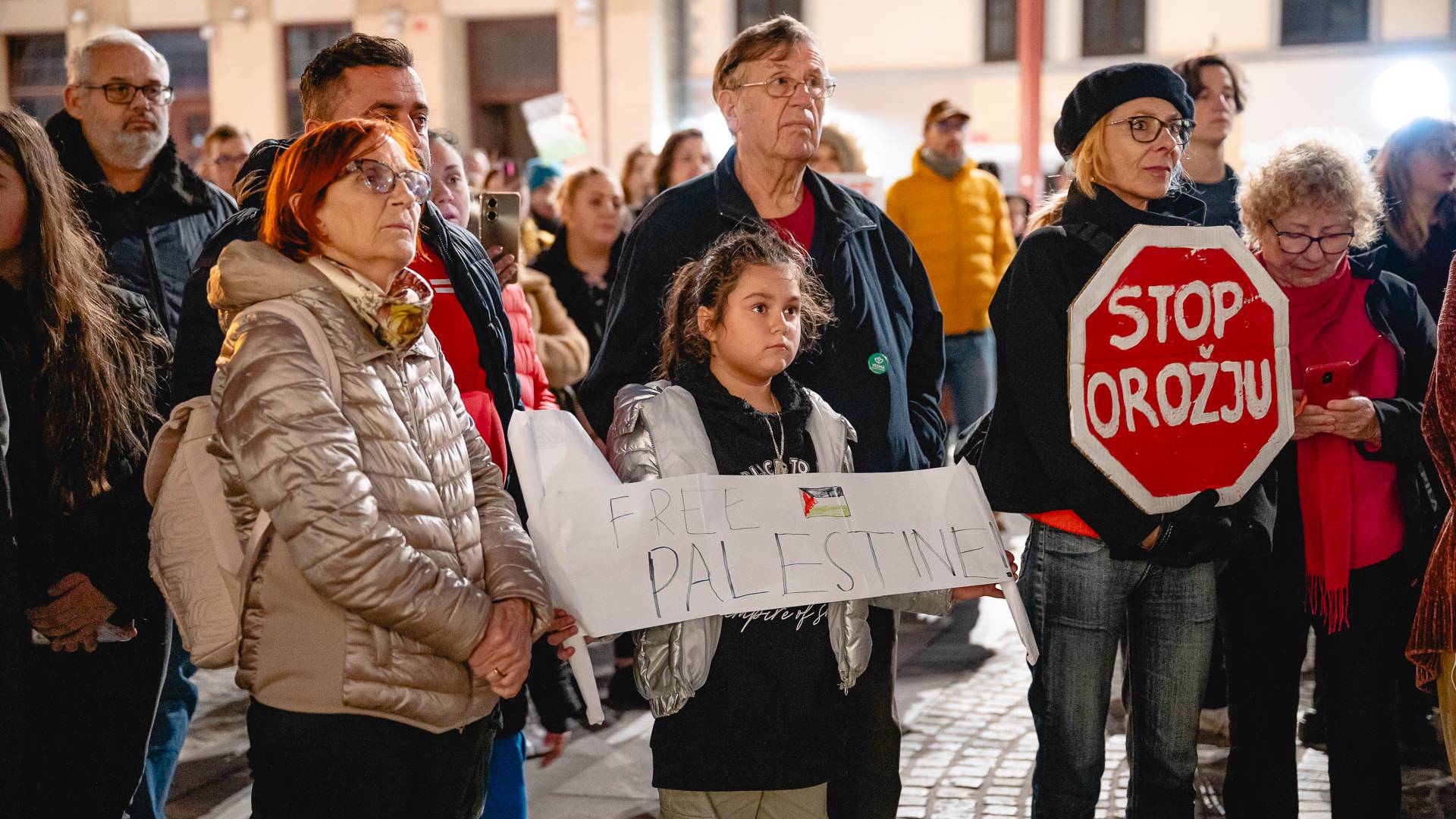 V Palestini že od oktobra divja hujša oblika vojne, ki se sicer vije že desetletij. Direktorica Pekarne Magdalenske mreže Urška Breznik, ki je shod organizirala, krvave dogodke označuje kot etnično čiščenje. V zadnjih tednih je bilo ubitih že več kot 10.000 Palestincev in Palestink, številka pa vztrajno raste.