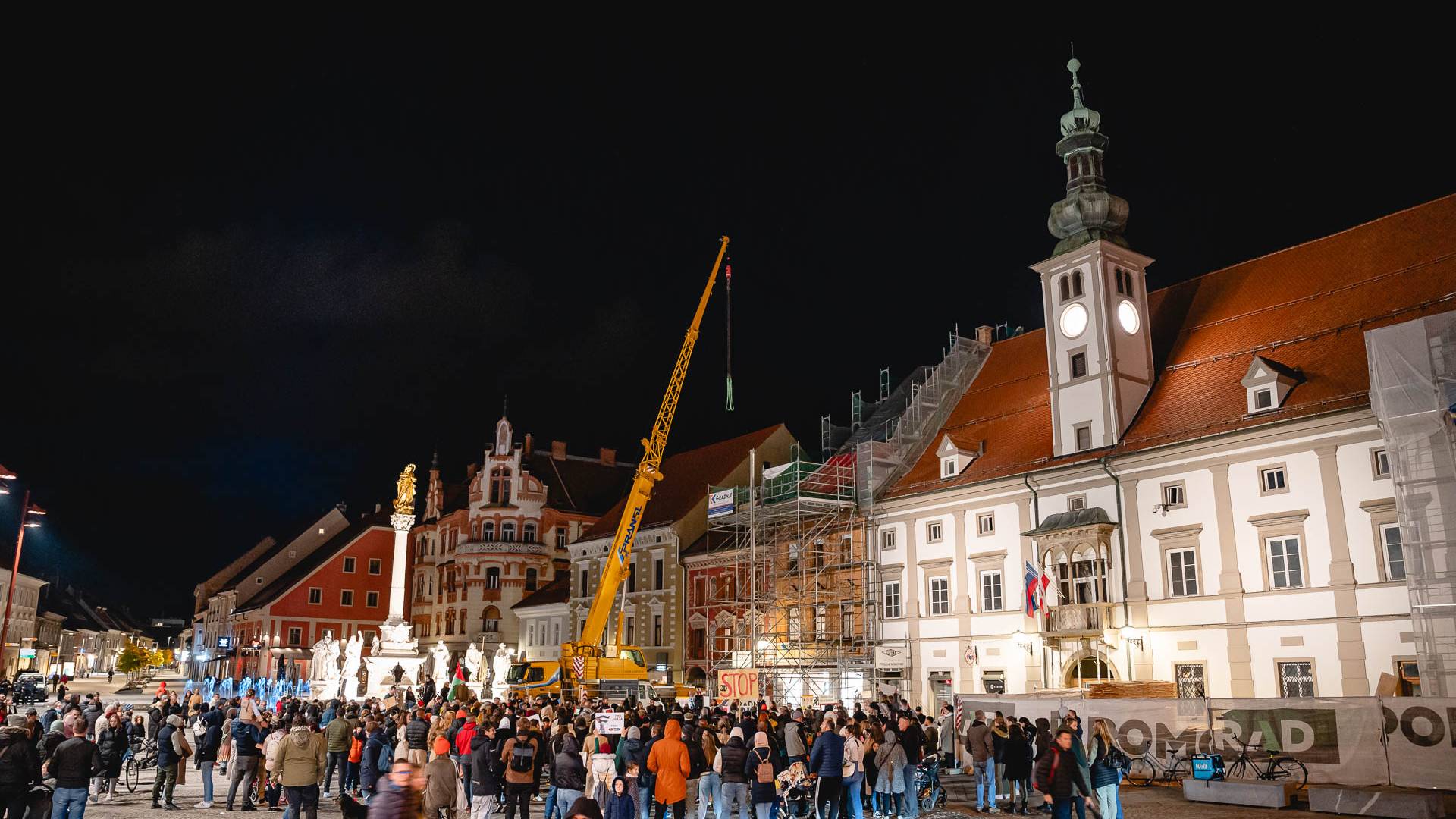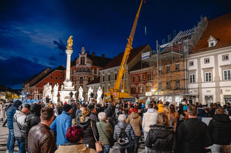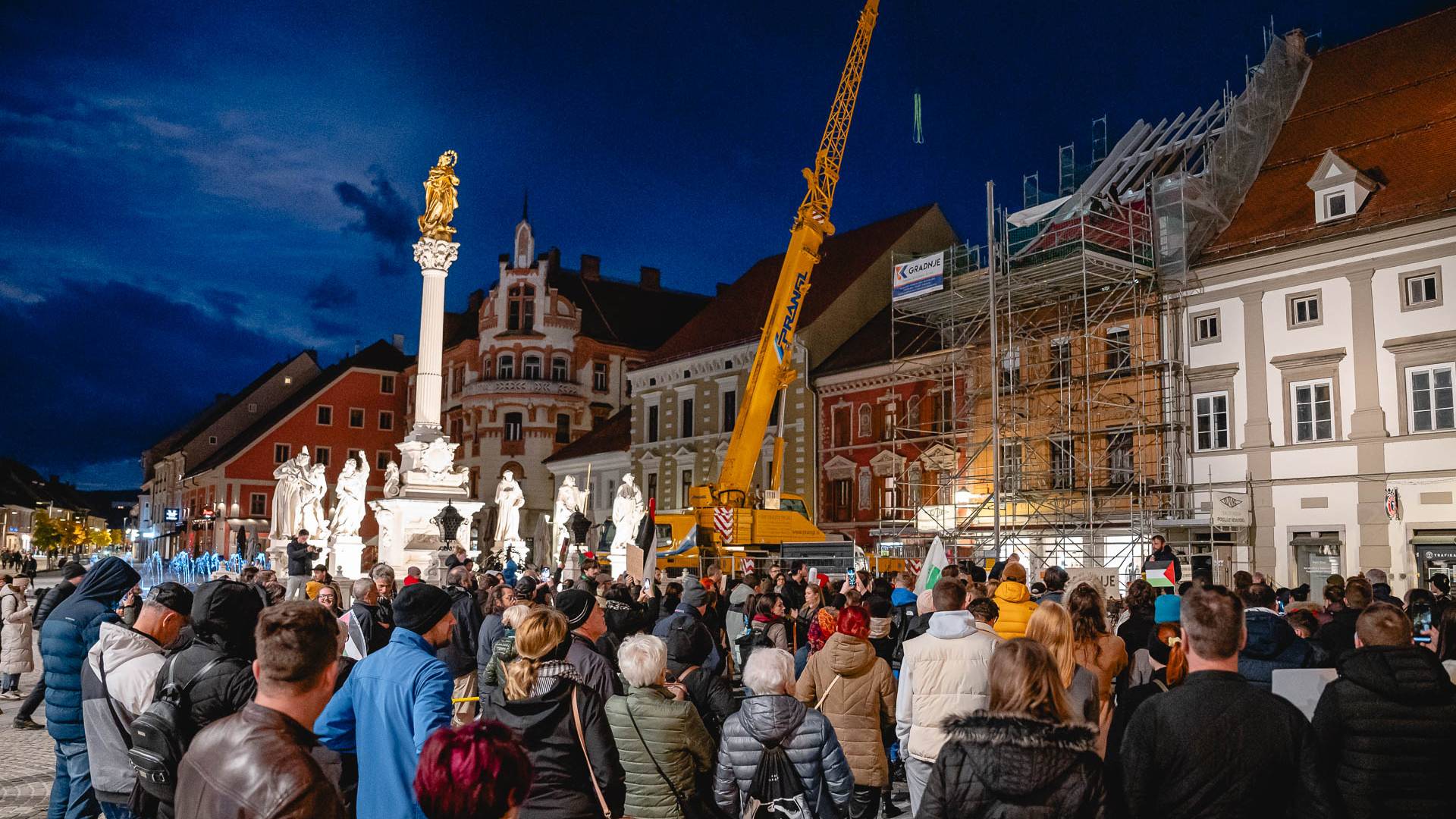 Mariborski Glavni trg so ob 17. uri v znak solidarnosti Palestini napolnili protestniki.