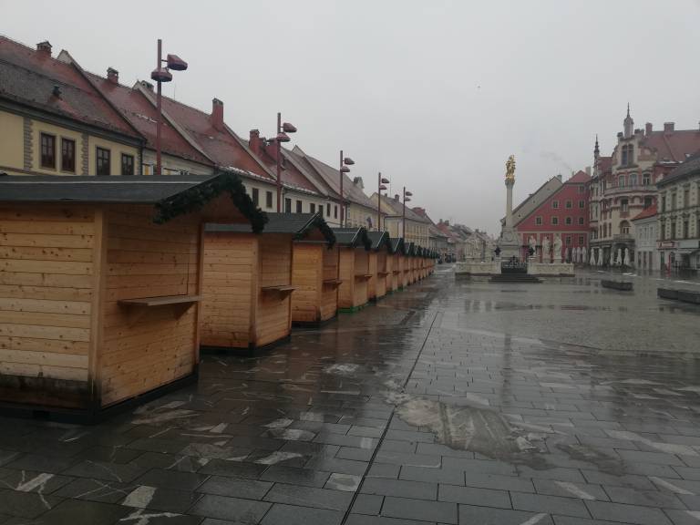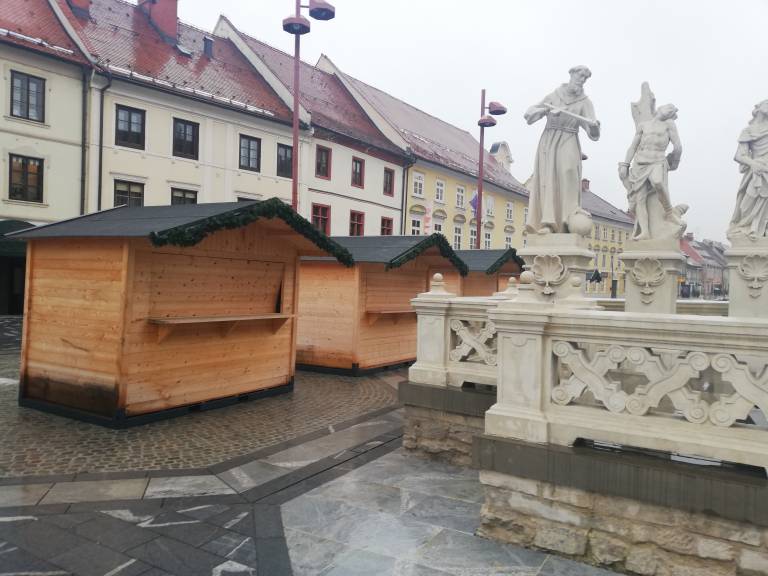 Na Glavnem trgu že stojijo sejemske hišice, ki bodo ta konec tedna začele ponujati praznična darila.