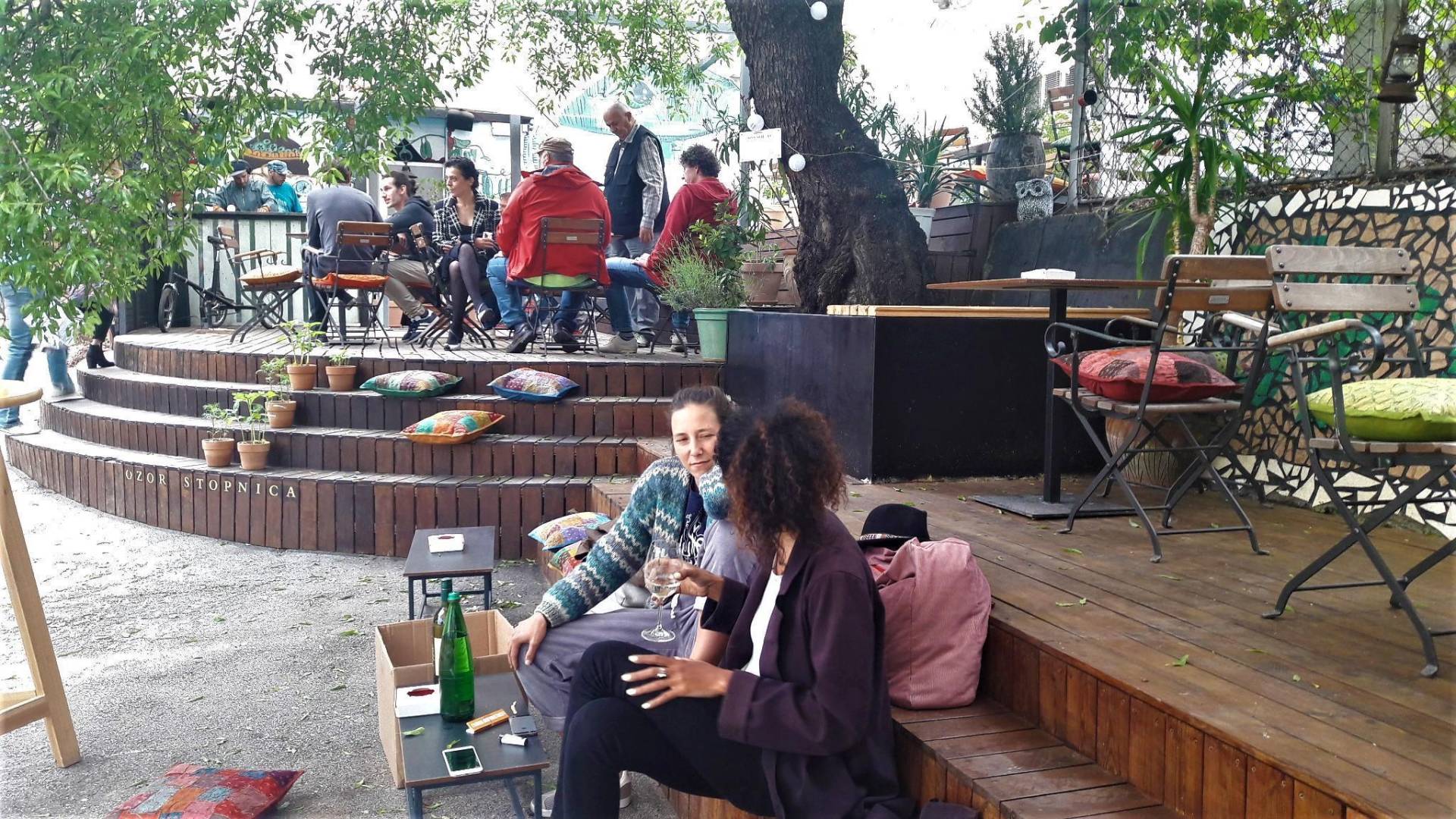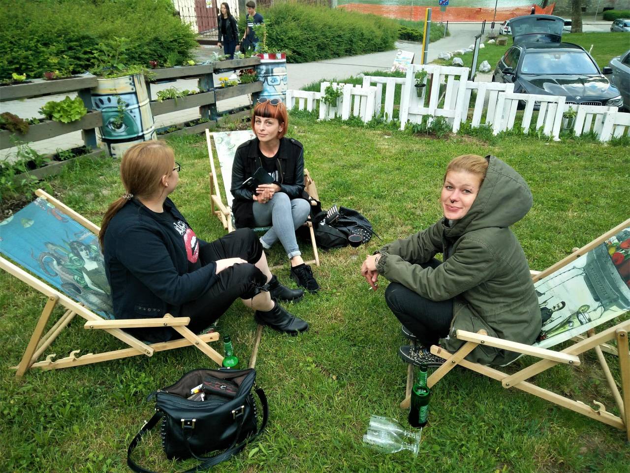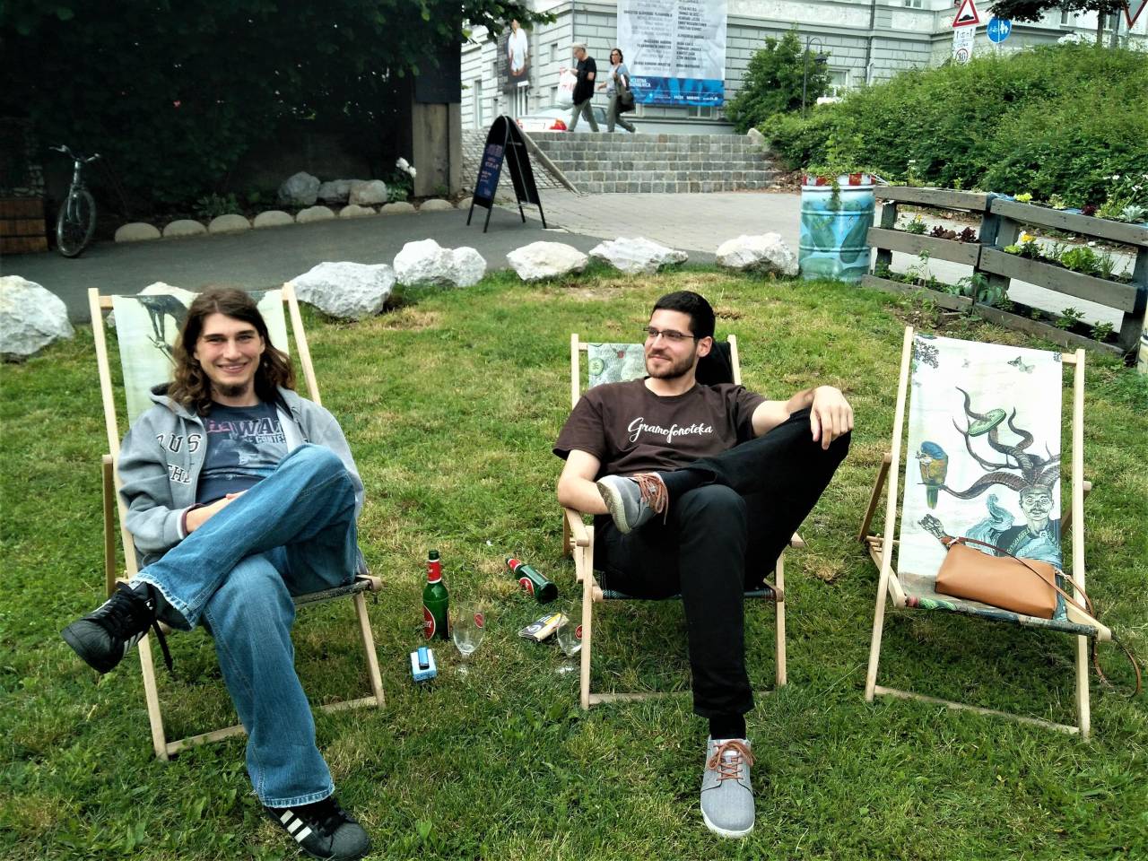 Ob našem prihodu je posedalo že kar nekaj ljudi in ob hladnem pivu uživalo v zelenem objemu urbanega vrta, medtem ko sta DJ-ja pripravljala svojo mizo. Kot se za otvoritev spodobi, je bilo nekaj dobrovoljnega hitenja in skrbi, da bo vse na svojem mestu. Medtem ko se obiskovalci v naravni idili niso pustili motiti.