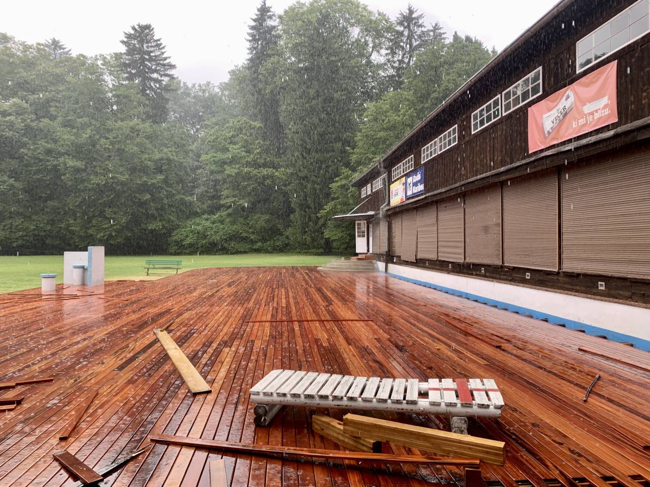 Na Mariborskem otoku bodo kopališče odprli šele to soboto, saj je pri 775.000 evrov vredni delni prenovi prišlo do zamude. Tudi zaradi slabega vremena, kot je bil torkov dež.