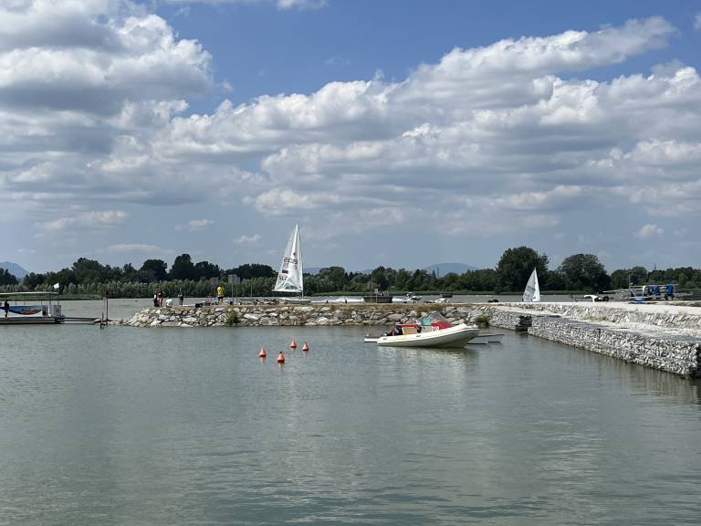 Na sončno nedeljsko jutro je na jezeru že bilo videti plapolanje belih jader v idealnih pogojih za tekmovalce. Ljudje so navdušeno opazovali jadralce iz bližnjega Bara Ranca Ptuj, ki so se hitro mudili po jezeru.