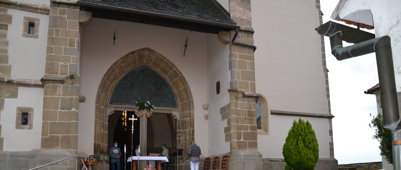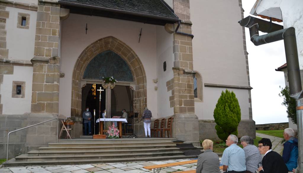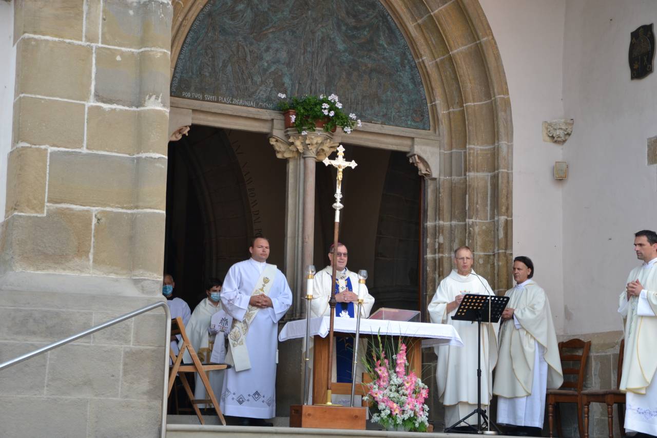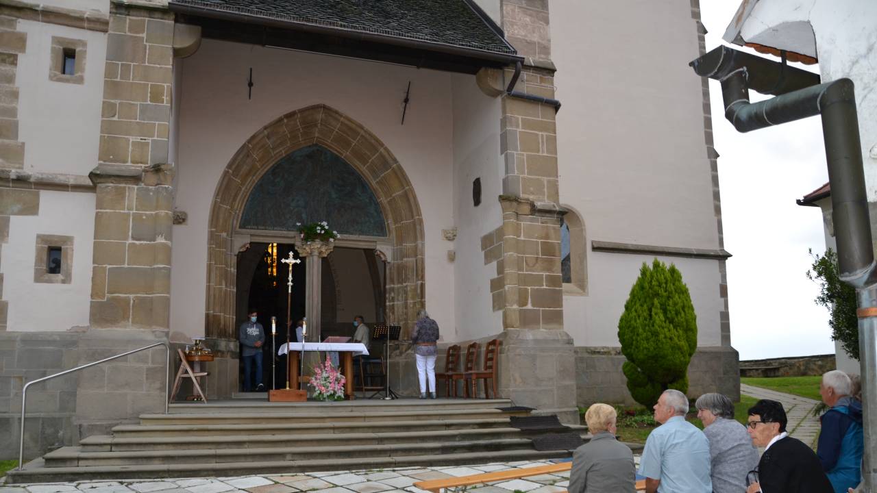 Oltar, za katerim so maševali, je bil postavljen pred vhod, saj tokrat verniki niso smeli v cerkev. Tako so pred cerkvijo pripravili tudi klopi in stole, na katerih so lahko verniki poslušali mašo.