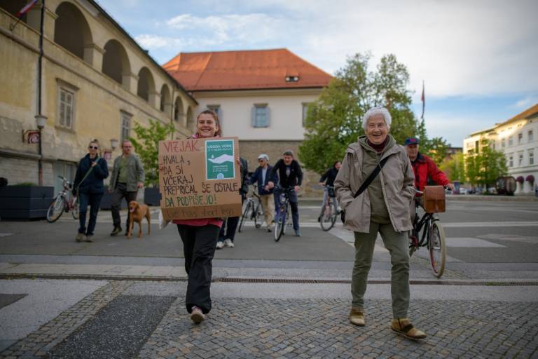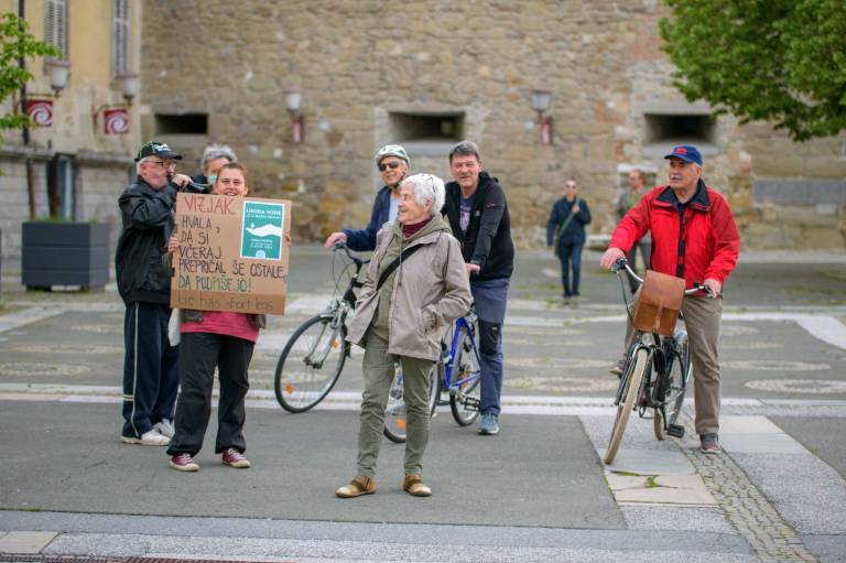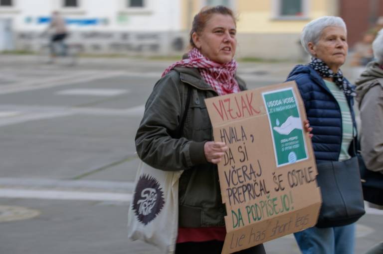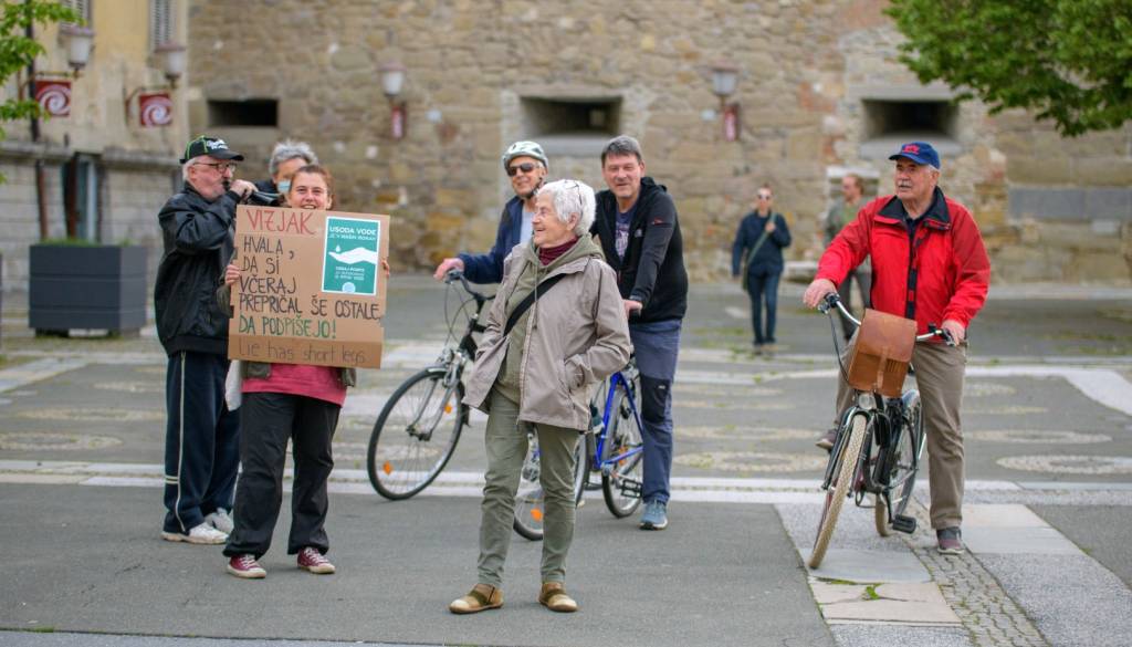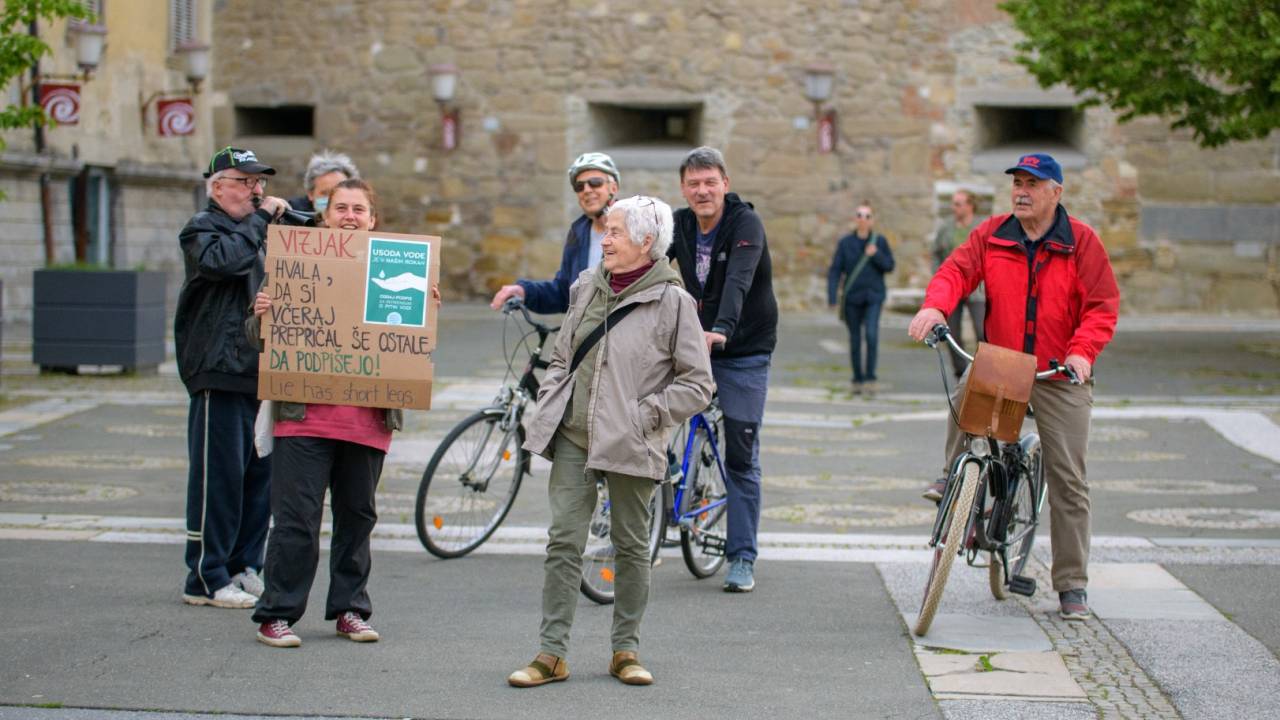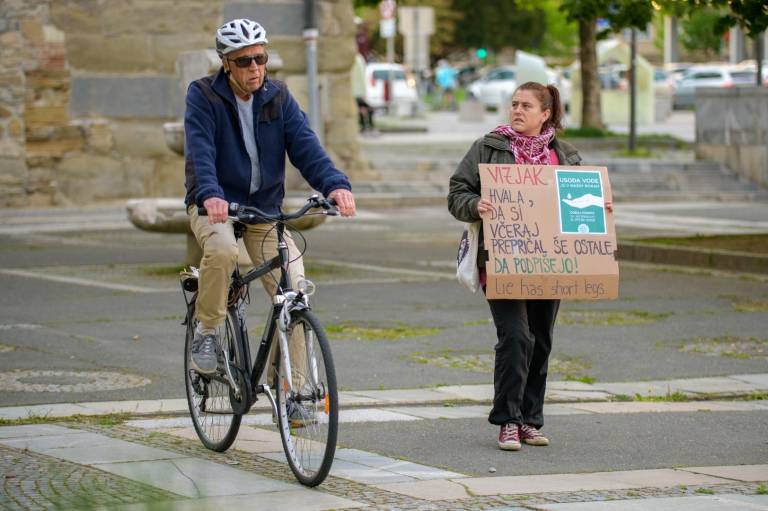 Samo nekaj vztrajnih posameznikov je namreč protestno kolesarilo na mariborskem Trgu svobode, nekaj protestnikov se je pa sprehodilo tudi peš. Viden je bil tudi transparent v podporo referendumu za pitno vodo.