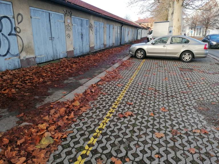 Pred nekaterimi garažami je na tleh narisana rumena črta, ki označuje prepoved parkiranja in omogoča dostop do garažnih vrat. Težava je v tem, da je preostali del površine urejen z enakimi perforiranimi betonskimi ploščami, kar voznike hitro zavede, saj domnevajo, da je parkiranje dovoljeno povsod. Rumeno črto pa mnogi pogosto spregledajo.
