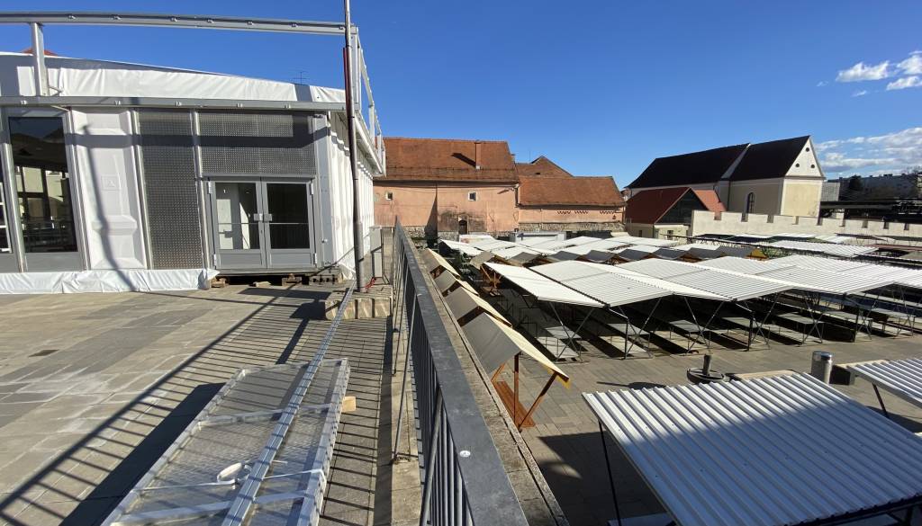 Ste nad srednjo mariborsko tržnico ob Koroški cesti že opazili, da postavljajo nov objekt? Gre za začasno lokacijo mesno-mlečnega paviljona. Prodaja mesa in mlečnih izdelkov bo tam potekala, dokler Mestna občina ne bo prenovila stavbe na Koroški cesti.