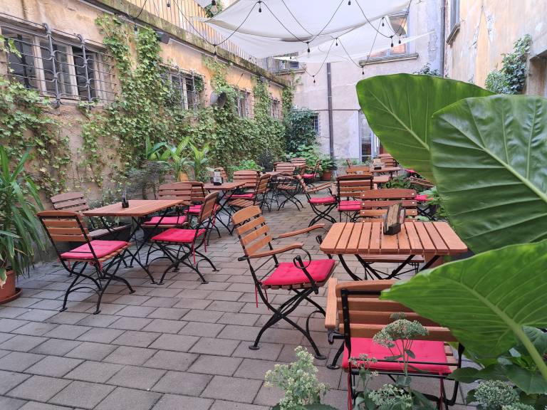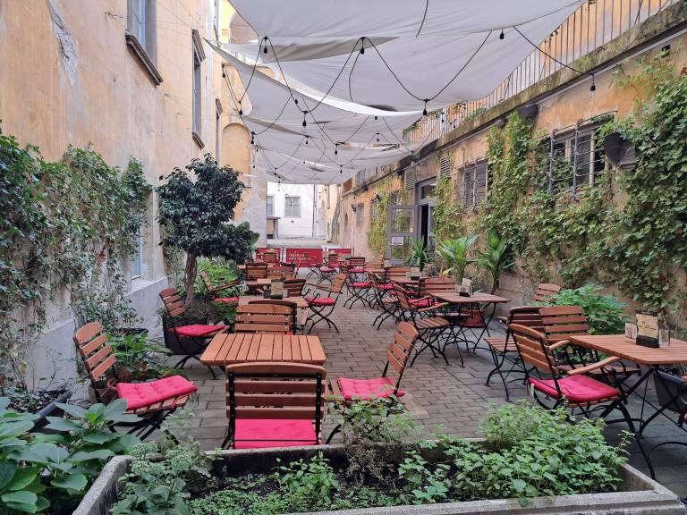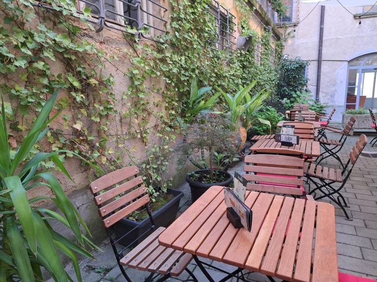 Odmaknjenost terase, ki ni na očem mimoidočih, je po njegovem mnenju dvorezen meč. Po eni strani je ljudem zelo všeč, da jih nihče ne vidi, ko so v središču mesta na kavi, a po drugi strani je nove goste težko »zvabiti«, da bi vstopili v kavarno.
