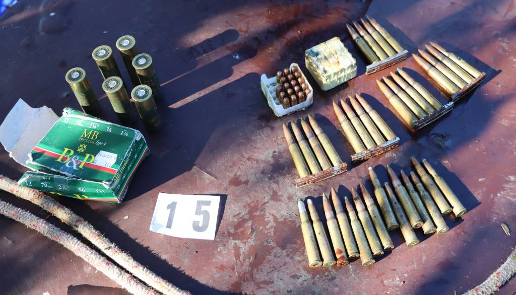Našli so tri pištole, od tega je imela ena izmed njih dušilec, šibrno puško z optiko in avtomatsko puško M-70. Poleg tega so našli še sedemsto kosov različnega streliva.
