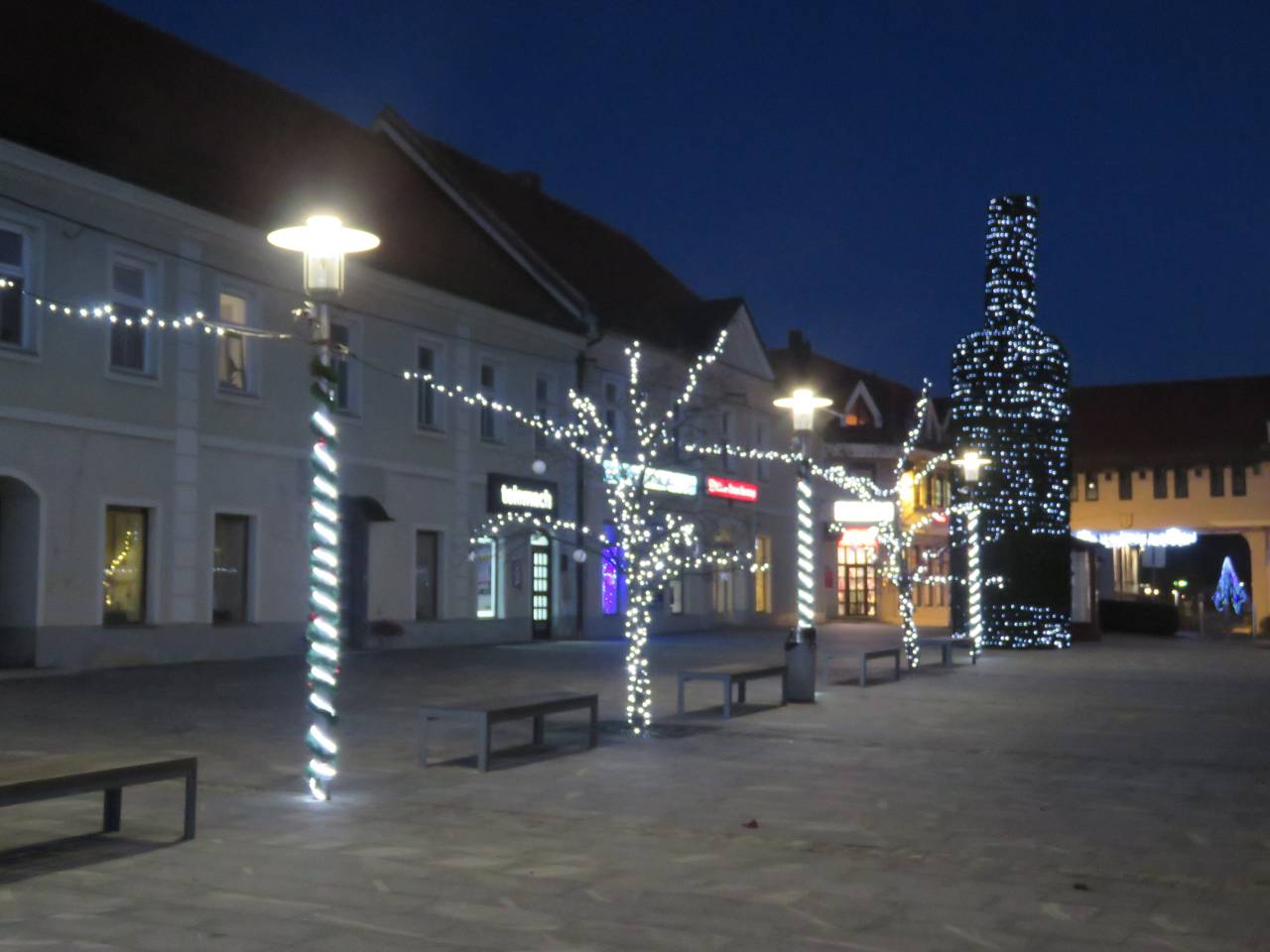 Najopaznejši element letošnje praznične okrasitve Ormoža je gotovo okoli sedem metrov visoka smreka na Kerenčičevem trgu, ki ima obliko vinske steklenice. Okrašena je z zelenjem in okoli 3.000 lučkami.