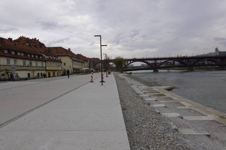 Po naših informacijah je ureditev stopnic pri Pristanu in na vzhodu zamaknjena za nedoločen čas, glavno oziroma centralno stopnišče pri novem trgu - Trgu Lent pa naj bi se uredilo takoj, ko bo to možno. Vsaj tako pravijo na mariborski občini.