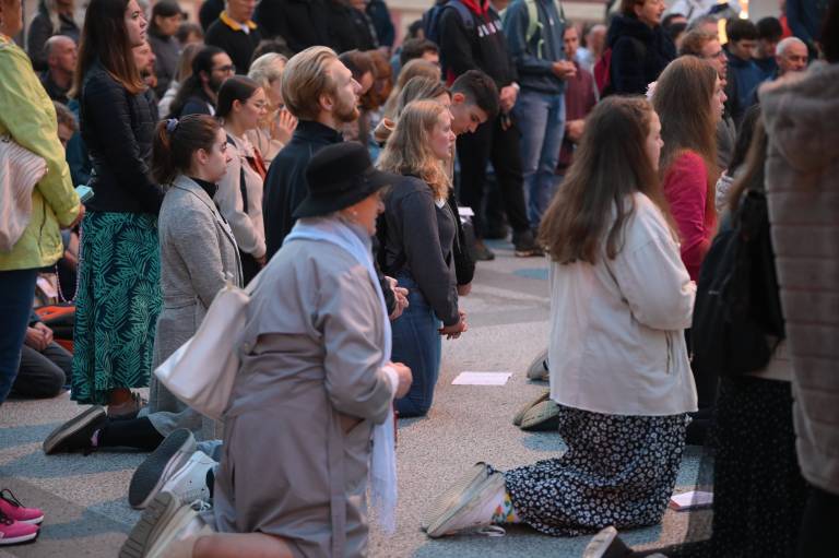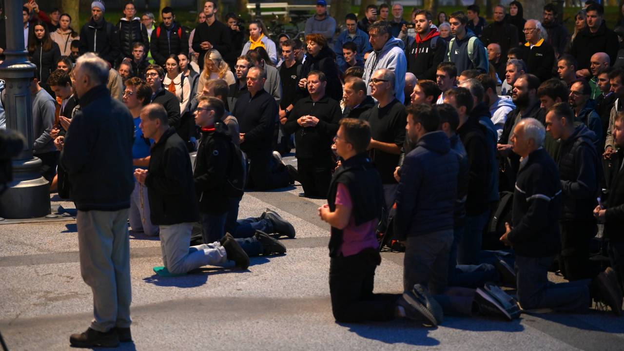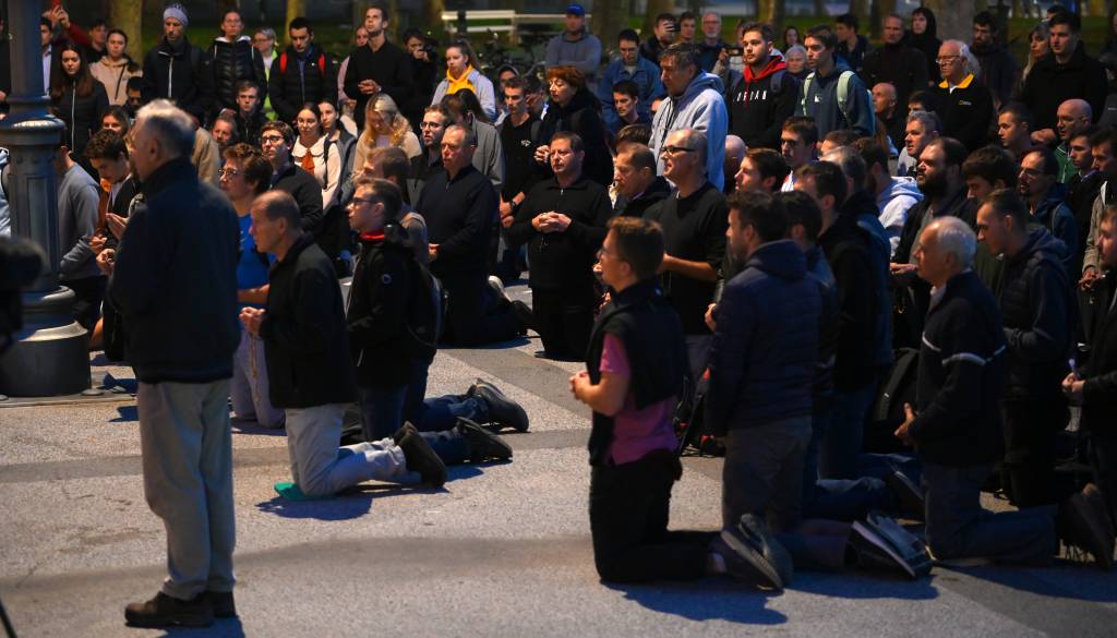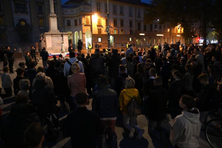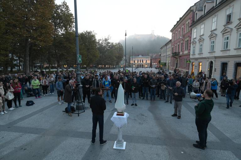 Organizacija Katoliška mladina je danes na Kongresnem trgu v Ljubljani pripravila prvo javno molitev rožnega venca.