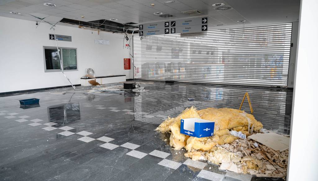 Ponedeljkovo neurje je ponovno, tokrat že drugič v slabem mesecu dni poškodovalo Letališče Edvarda Rusjana Maribor. Prostori so videti, kot da je padla bomba.