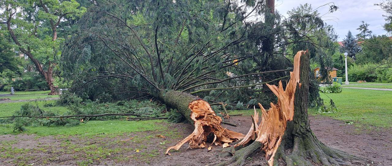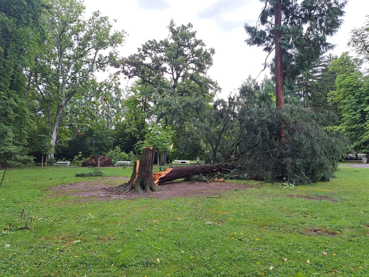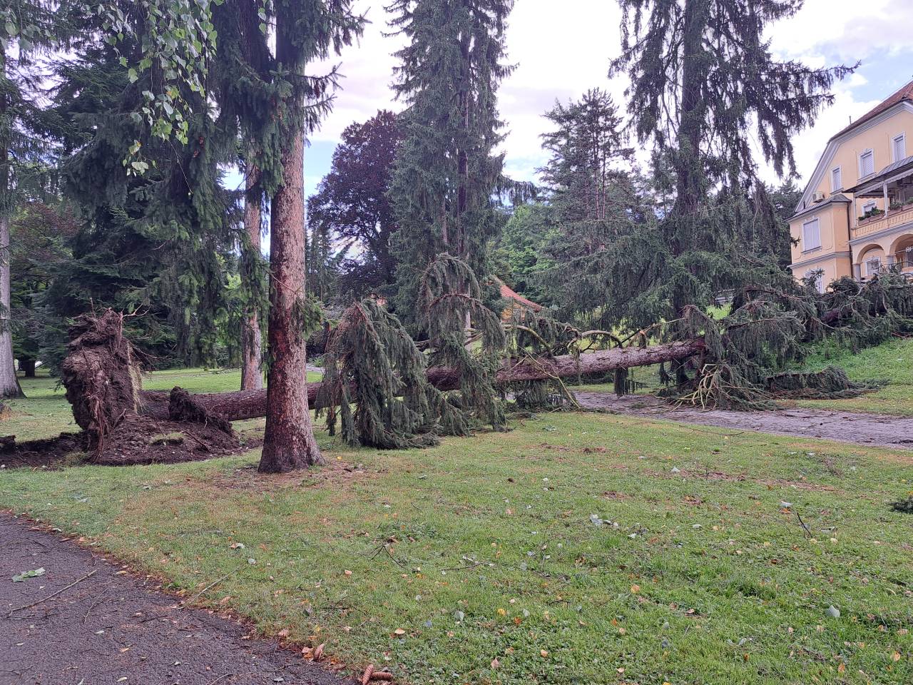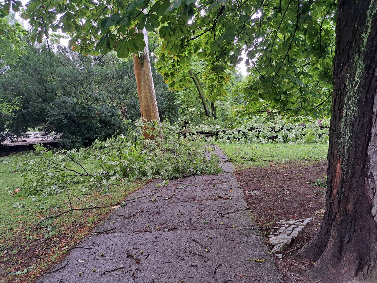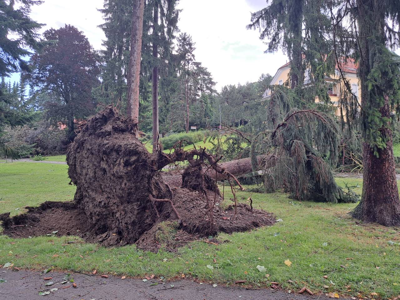 Močno neurje, ki je v zgodnjih jutranjih urah zajelo tudi Maribor, je posledice pustilo tudi v Mestnem parku. Izruvanih je najmanj osem dreves, veliko dreves in vej pa je polomljenih, so zapisali na Mestni občini Maribor.