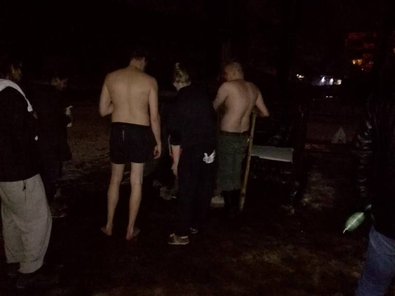 En izmed petih Fincev s skoraj neizgovorljivim imenom je pojasnil, da so na svojih popotovanjih v podobnih youth projektih že dvakrat poprosili, če bi si lahko na njihovem dvorišču napravili DIY (naredi si sam) savno. A vselej so jih zavrnili. V društvu Indijanez pa: “Seveda, kaj potrebujete?” In skupaj so šli v nabavo. Skupaj so nabavili ponjave, stare letve, drva in granitne kocke. Letve so uporabili kot notranje klopce, ponjave pa kakopak uporabili za zaščitne “stene” med zunanjim mrazom, ki to zadnje sploh ni bil, in notranjo vročino. Znotraj so si postavili pravcati kamin iz ganitnih kock in drv, ki so jih nabavili. Ogenj je gorel kar pet ur. A ker niso imeli dimnika (slednje bi terjalo še dosti več časa), so ogenj zaradi ogljikovega monoksida morali pogasiti prej.