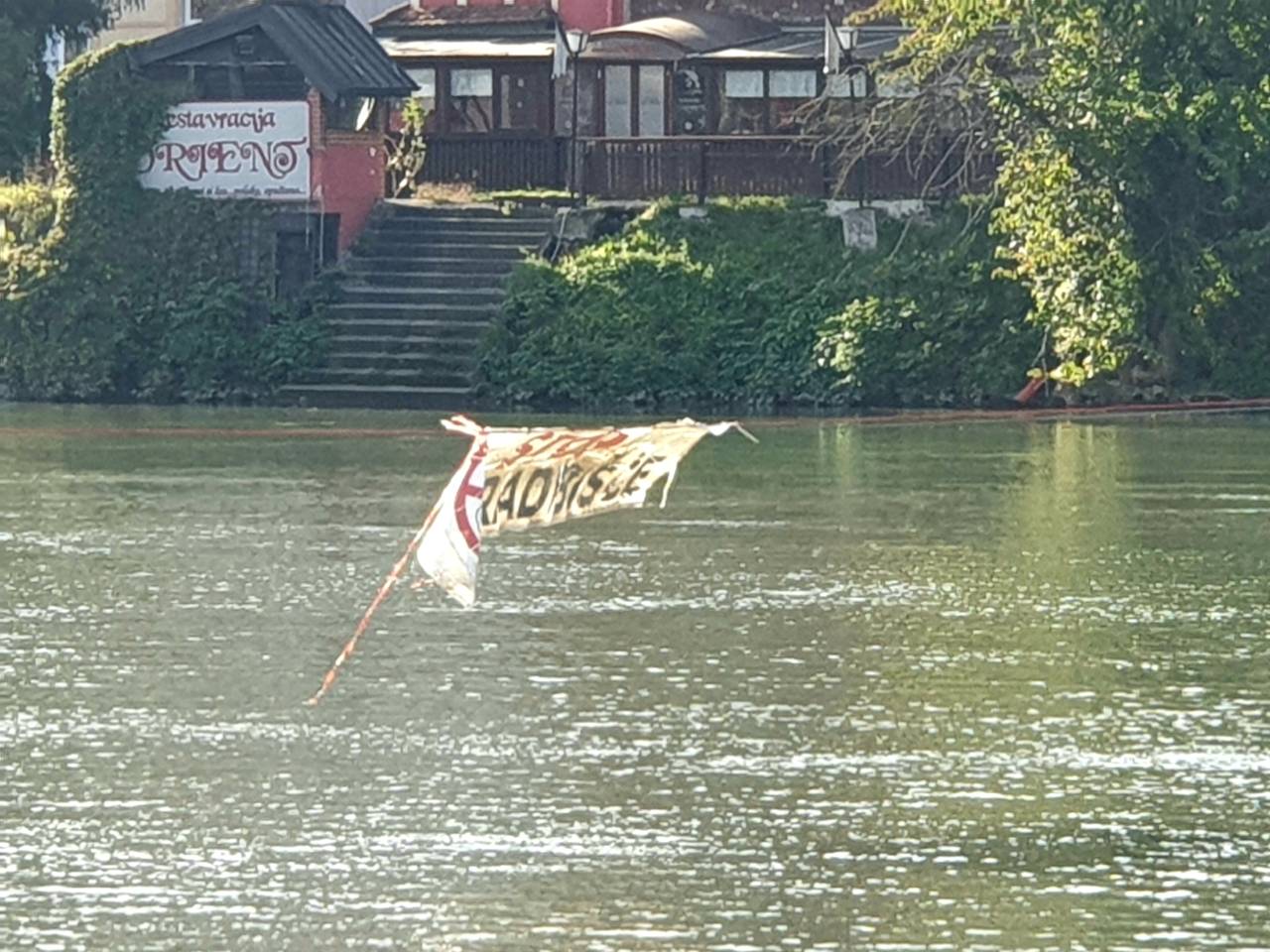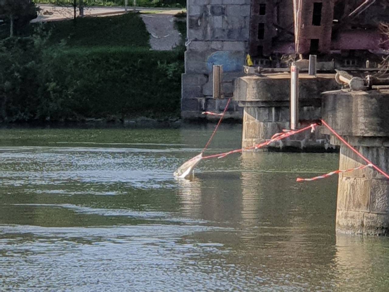 Tam med drugim visi tudi napis »Stop gradbišče«. Ali gre le za varovanje gradbišča ob nastajanju nove brvi, za zdaj ostaja neznanka.