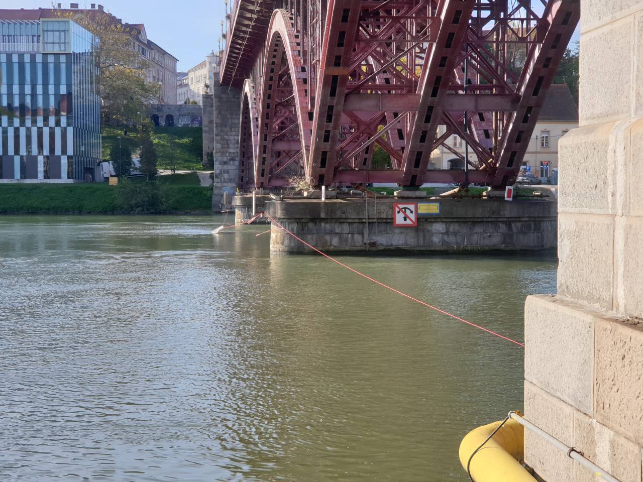 Številni Mariborčani in drugi mimoidoči se še vedno radovedno ustavljajo na mariborskem Glavnem mostu in opazujejo dela, ki jih izvaja Makro 5 gradnje, za novonastajajočo brv Lent - Tabor.