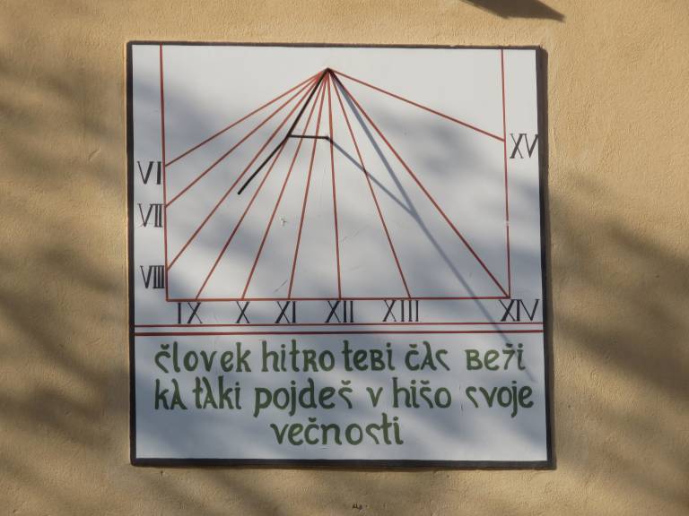»Tisoče let sta bila sončni vzhod in sončni zahod edina znaka za spremembo človekove aktivnosti. Znak tega prvobitnega stanja najdemo tudi v Bibliji. V začetku je bil človek sam sebi prva sončna ura in njegova lastna senca mu ni ostala neopažena. Lesena palica, postavljena vertikalno v tla, je bila najpreprostejša oblika gnomona, ki je z dolžino sence omogočala določitev dnevnega časa in letnih časov,« je dejal Boštjan Pavlič.