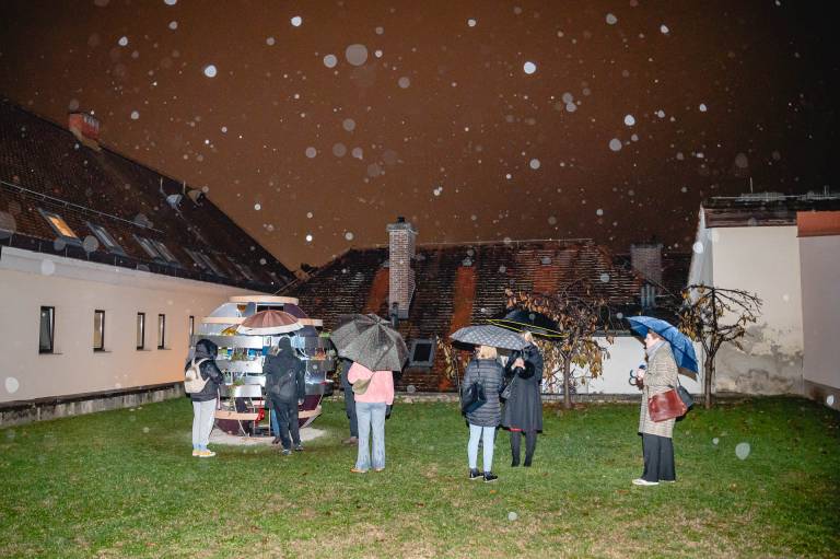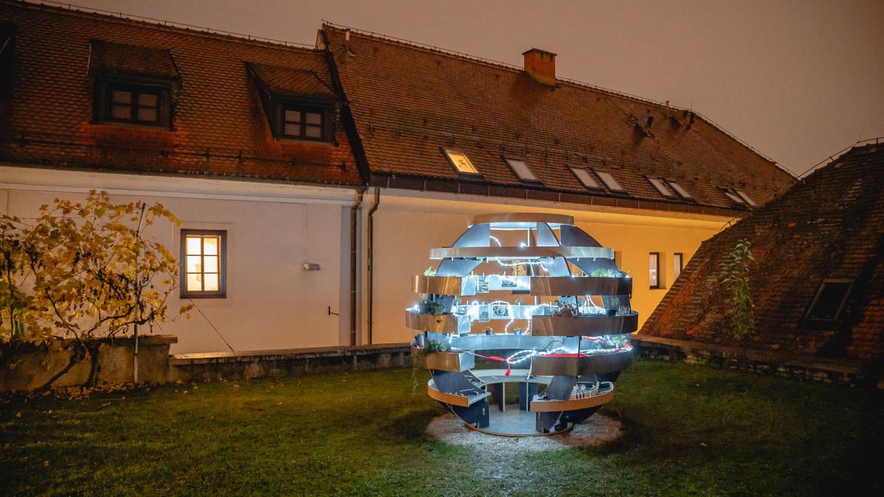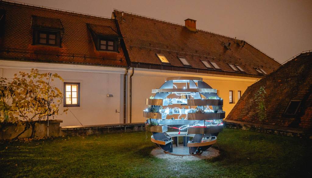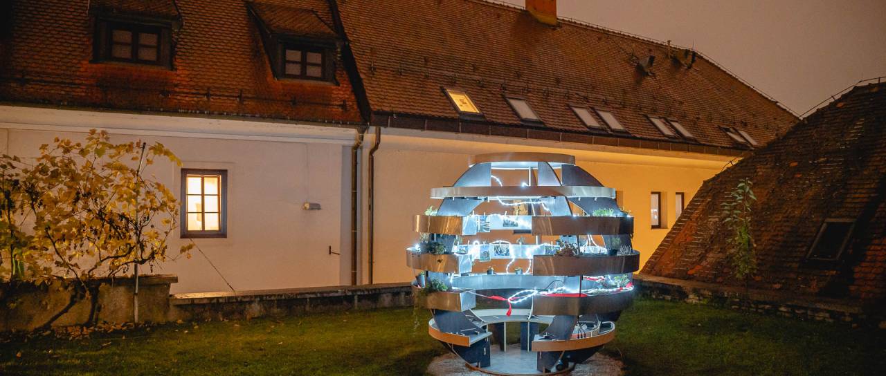V sklopu projekta »Naj dvorišče ne bo parkirišče«, ki ga sofinancira Ministrstvo za naravne vire in prostor ter Evropska Unija in poteka v organizaciji društva Hiša!, se je v petek na dvorišču Pokrajinskega arhiva Maribor odprl Paviljon miru in sožitja oziroma paviljon Growroom.
