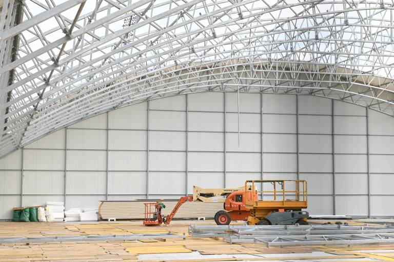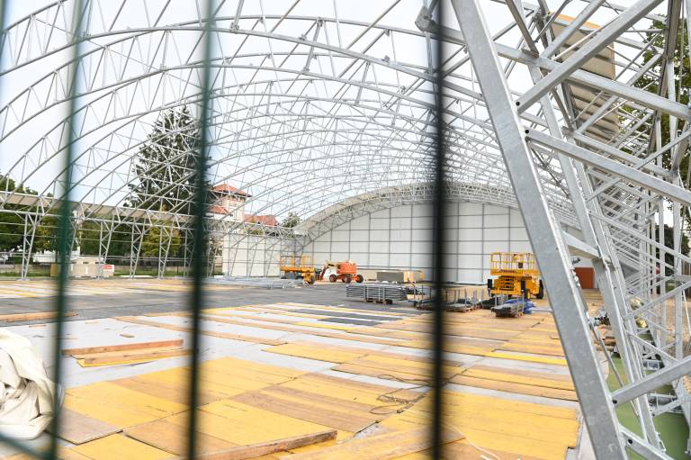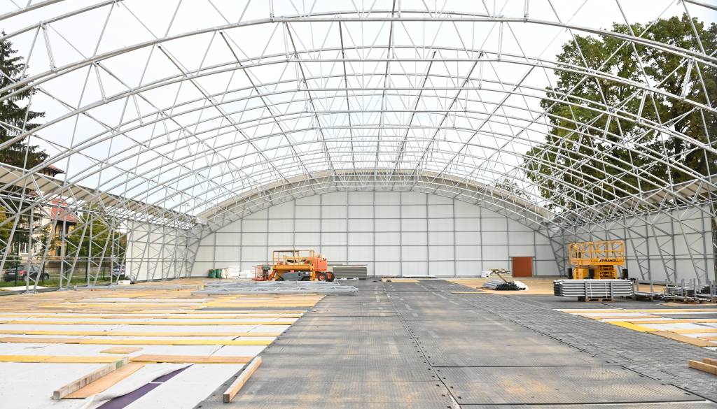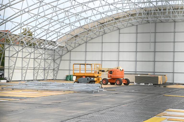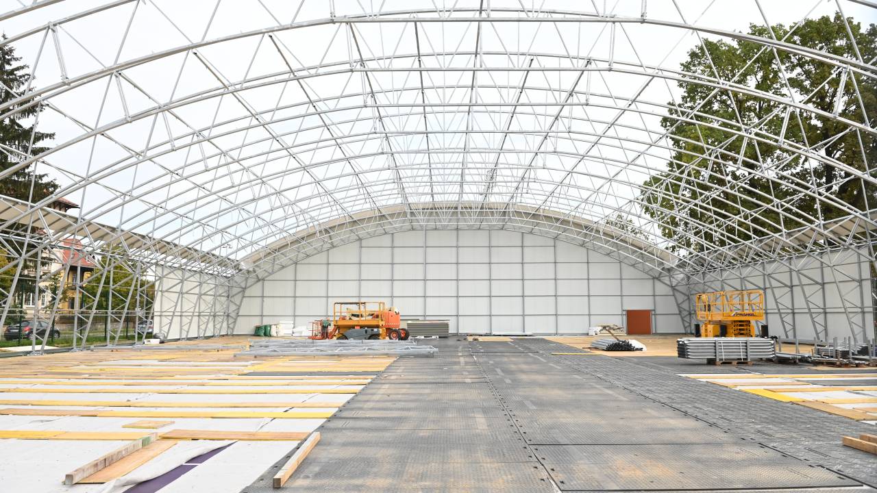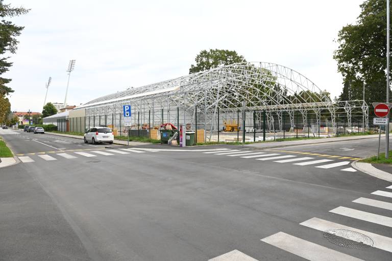 Ob Ljudskem vrtu v središču mesta hoško podjetje za 750 tisočakov gradi novo teniško dvorano. Končana bi naj bila že prihodnji mesec, preverili pa smo, kako napredujejo dela.