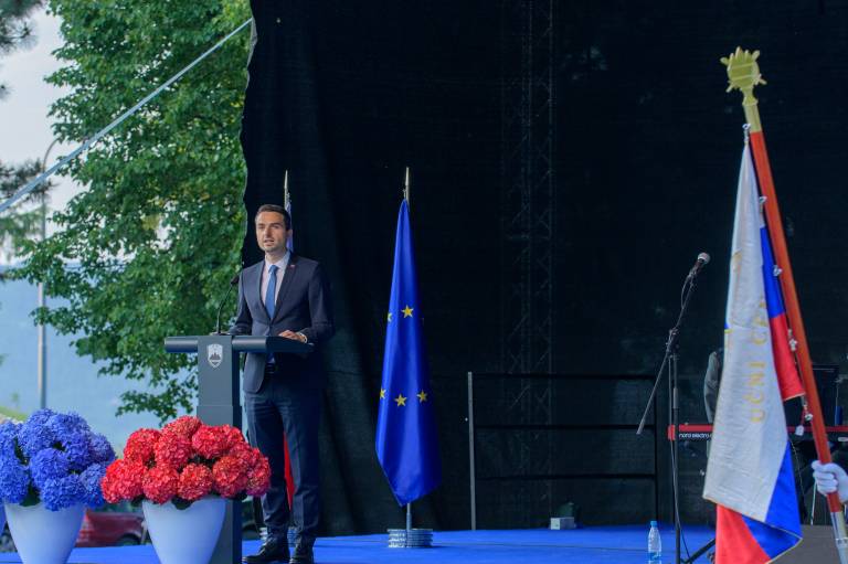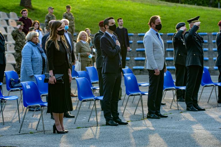 Po torkovi slovesnosti na Igu, kjer je prisotne nagovoril premier Janez Janša, je danes na slovesnosti v Pekrah zbrane nagovoril obrambni minister Matej Tonin.