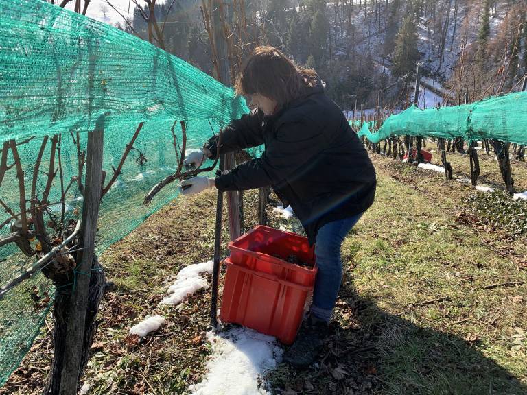 Namesto polnih grozdov, ki bi jih trgali na običajni trgatvi, so danes v vinogradu Univerzitetnega centra za vinogradništvo in vinarstvo Meranovo Fakultete za kmetijstvo in biosistemske vede Univerze v Mariboru obirali že rahlo ovenele in osušene grozde z gnilobo. A prav iz takšnega grozdja lahko nastane predikatno vino.
