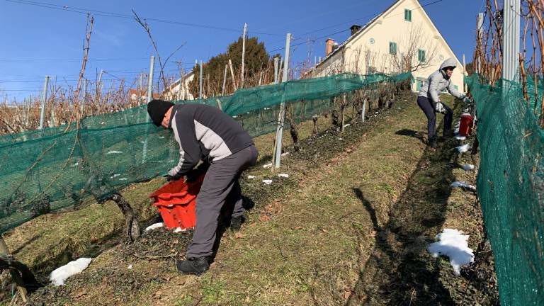 »Praktično nam je v moji 36-letni delovni karieri tukaj uspelo samo enkrat potrgati ledeno trgatev,« pravi vodja proizvodnje Meranovo.