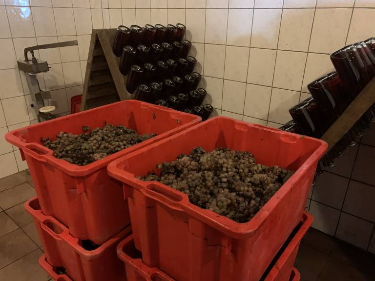 »To je tudi ta žlahtna gniloba, ki je tudi zahtevana v teh posebnih trgatvah, saj da to poseben okus potem vinu,« nam je povedal vodja proizvodnje na Meranovem Peter Kramer.
