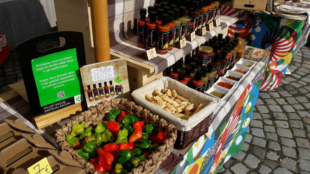 Mladenič pri prvi stojnici pa je ponujal nekaj ostrejšega, četudi nas je potolažil, da ima sladke različice – različne vrste čili omak Mojstrov okusa. Zaradi šibke tolerance smo mu verjeli na besedo, da je ponudba izvrstna, takšna je bila tudi dekoracija stojnice in videz stekleničk. Gre za blagovno znamko, rojeno iz gostilne KARLA, kjer so domači kuhinji dodali tudi omenjeni pester izbor čili omak, marmelad, mešanico začimb in drugih domačih izdelkov za popestritev kulinarike.
