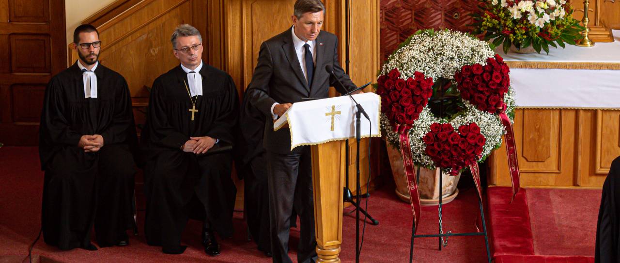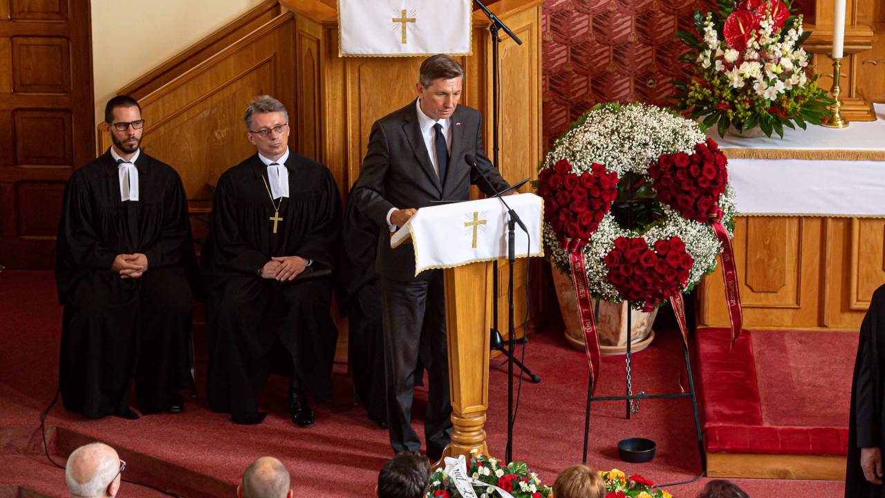 Žalne slovesnosti v spomin na pokojnega Gezo Ernišo se je udeležil tudi predsednik republike Borut Pahor, ki je nagovoril vse zbrane.
