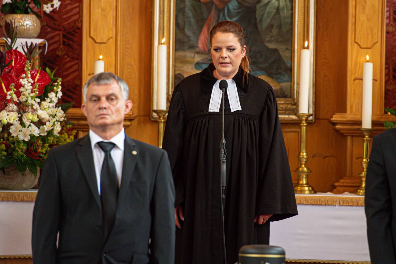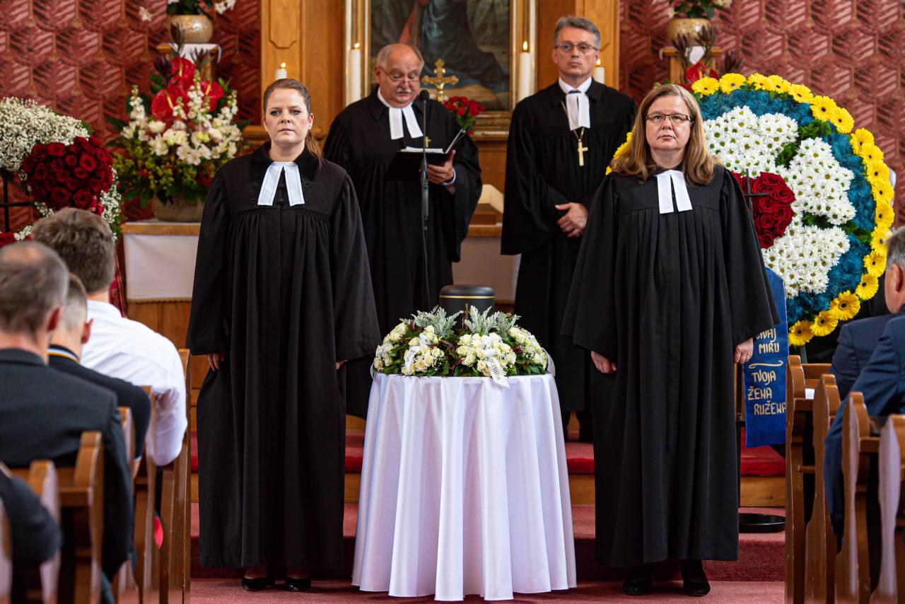 V evangeličanski cerkvi v Moravskih Toplicah je bila ob 12. uri pogrebna slovesnost, ob 13. uri je sledila še žalna slovesnost za pokojnega Gezo Ernišo.