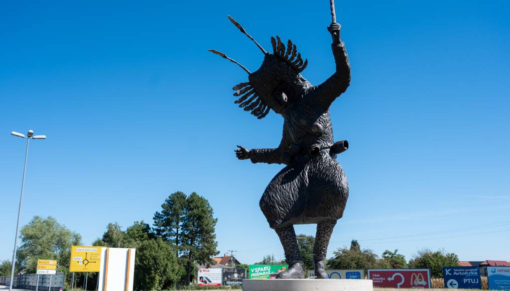 Gre za monumentalno skulpturo Kurenta, visoko skoraj pet metrov. To je največja etnografska skulptura v regiji, ki sta jo ustvarila lokalna umetnika Tomaž Plavec in Dušan Fišer.