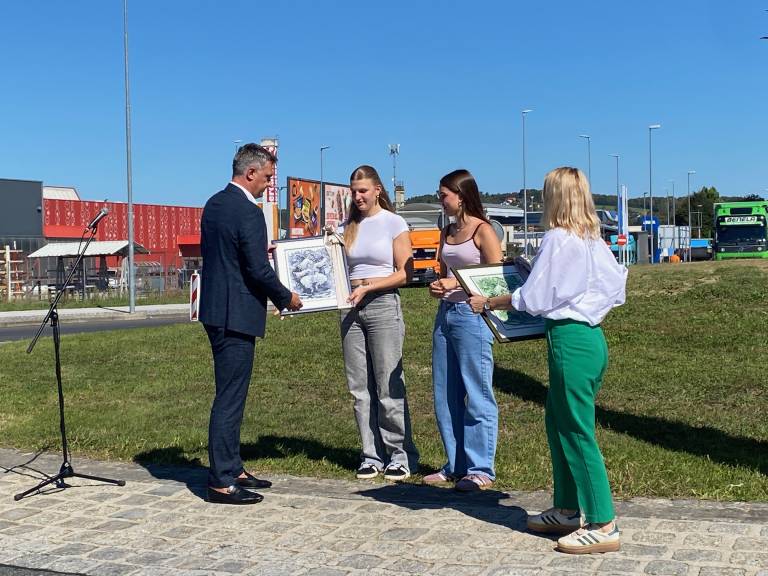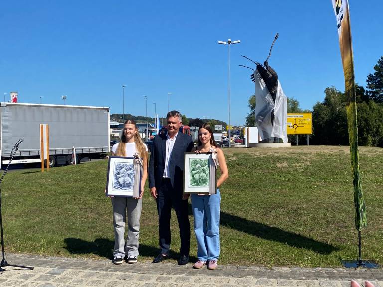 David Visenjak, direktor za trženje v Perutnini Ptuj, je dejal, da je pobuda za okrasitev krožišča na Ptuju prišla s strani dveh učenk Osnovne šole Olge Meglič, Ane in Eli, ki sta zdaj septembra prestopili prag gimnazije.