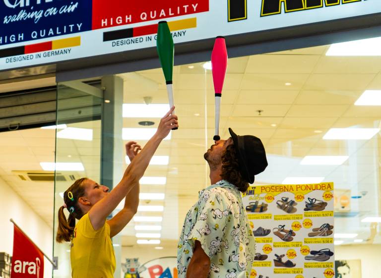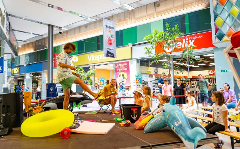 V priljubljenem nakupovalnem je bilo živahno dopoldne, odvijala se je mega zabava ob koncu šole.
