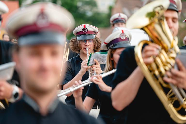 Večerno festivalsko dogajanje Festivala Lent je v petek s povorko otvoril Pihalni orkester Pošte Maribor.