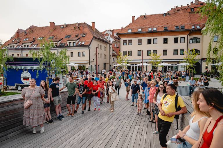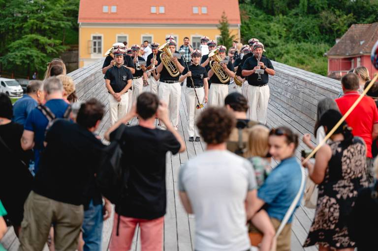 Korakanje ob ustvarjanju glasbe se je začelo pri Sodnem stolpu, zaključilo pa se je pri Vodnem stolpu z vmesnim postankom na Splavarski brvi.