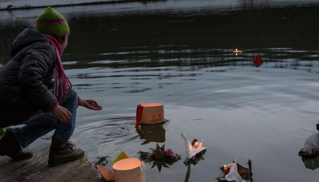 Danes so se zbrali otroci in starejši obiskovalci, ki so uživali ob pogledu na plavajoče gregorčke.