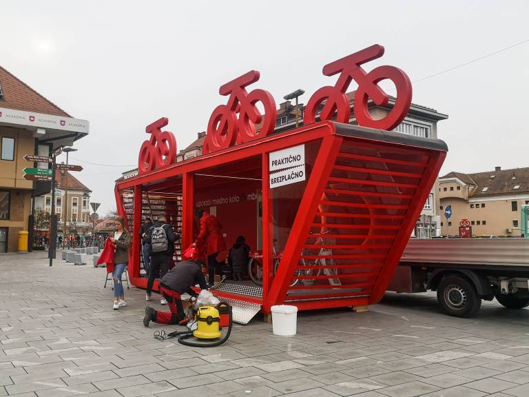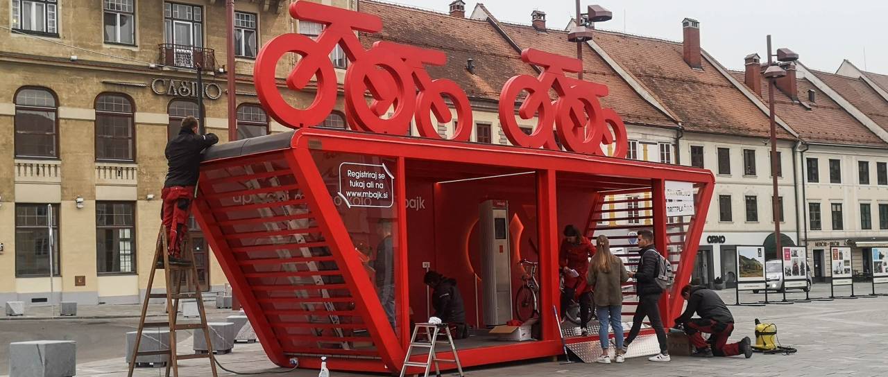 Ste opazili? Veliki rdeč zabojnik, ki ga postavljajo na Glavnem trgu, naznanja prihod MBajka v Maribor. Na 22 lokacijah vzpostavljajo kolesarske postaje, ki bodo omogočale sistem souporabe koles.