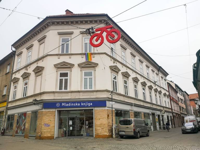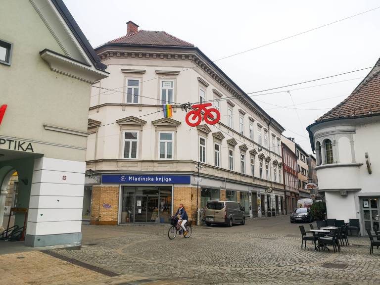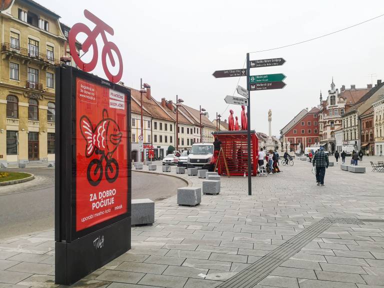 Prihod MBajka v mesto naznanjajo tudi plakati in rdeča kolesa, ki krasijo ulice v središču mesta.