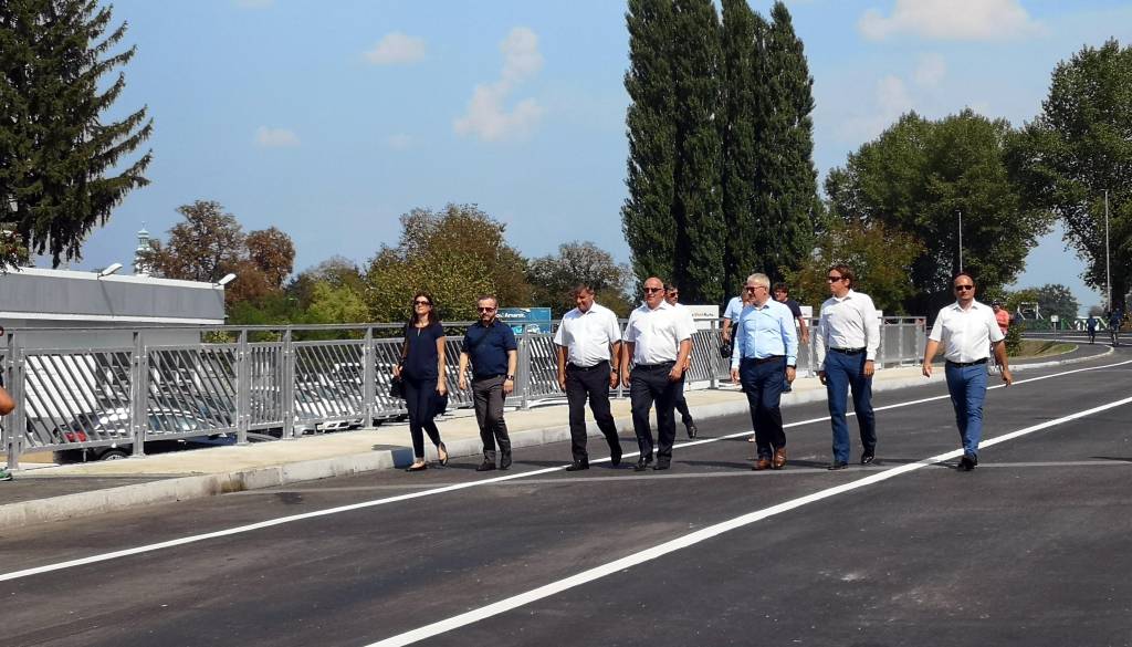 Potem ko sta se sprehodila čez prenovljeni most sta infrastrukturni minister v odhodu Peter Gašperšič in ptujski župan Miran Senčar dovolila težko pričakovano odprtje.