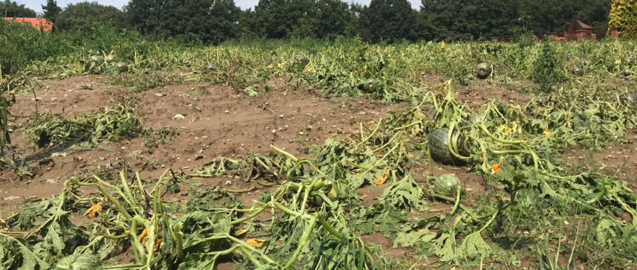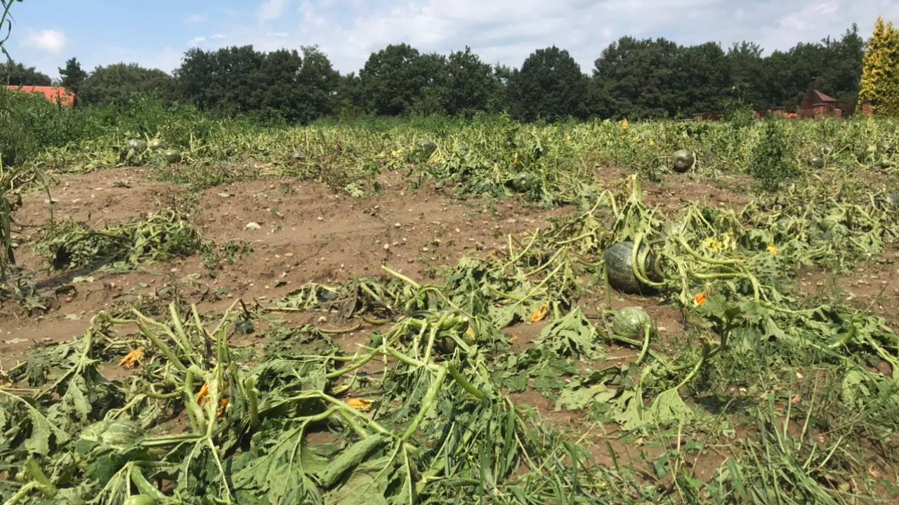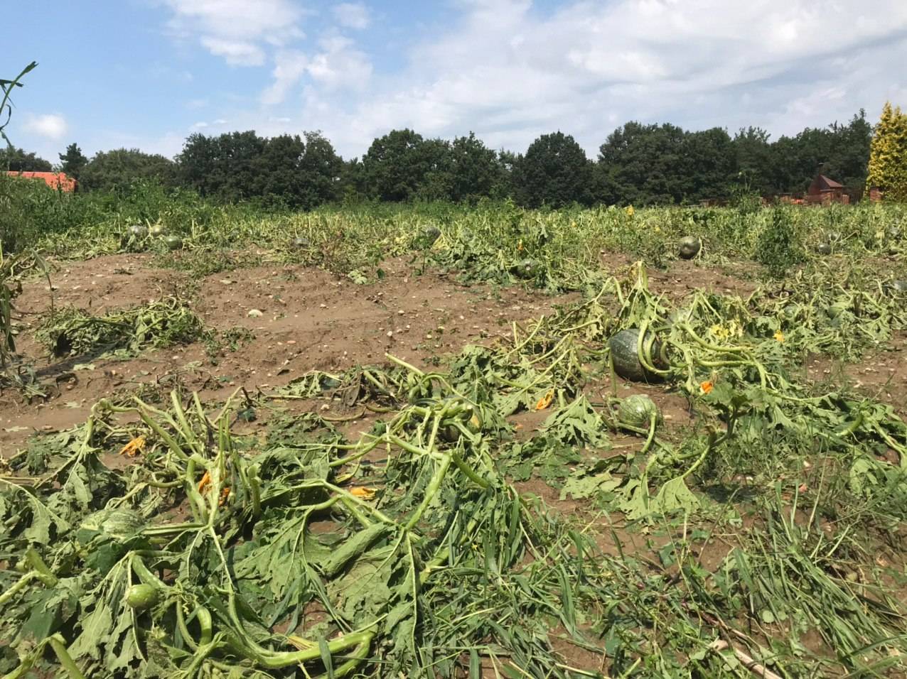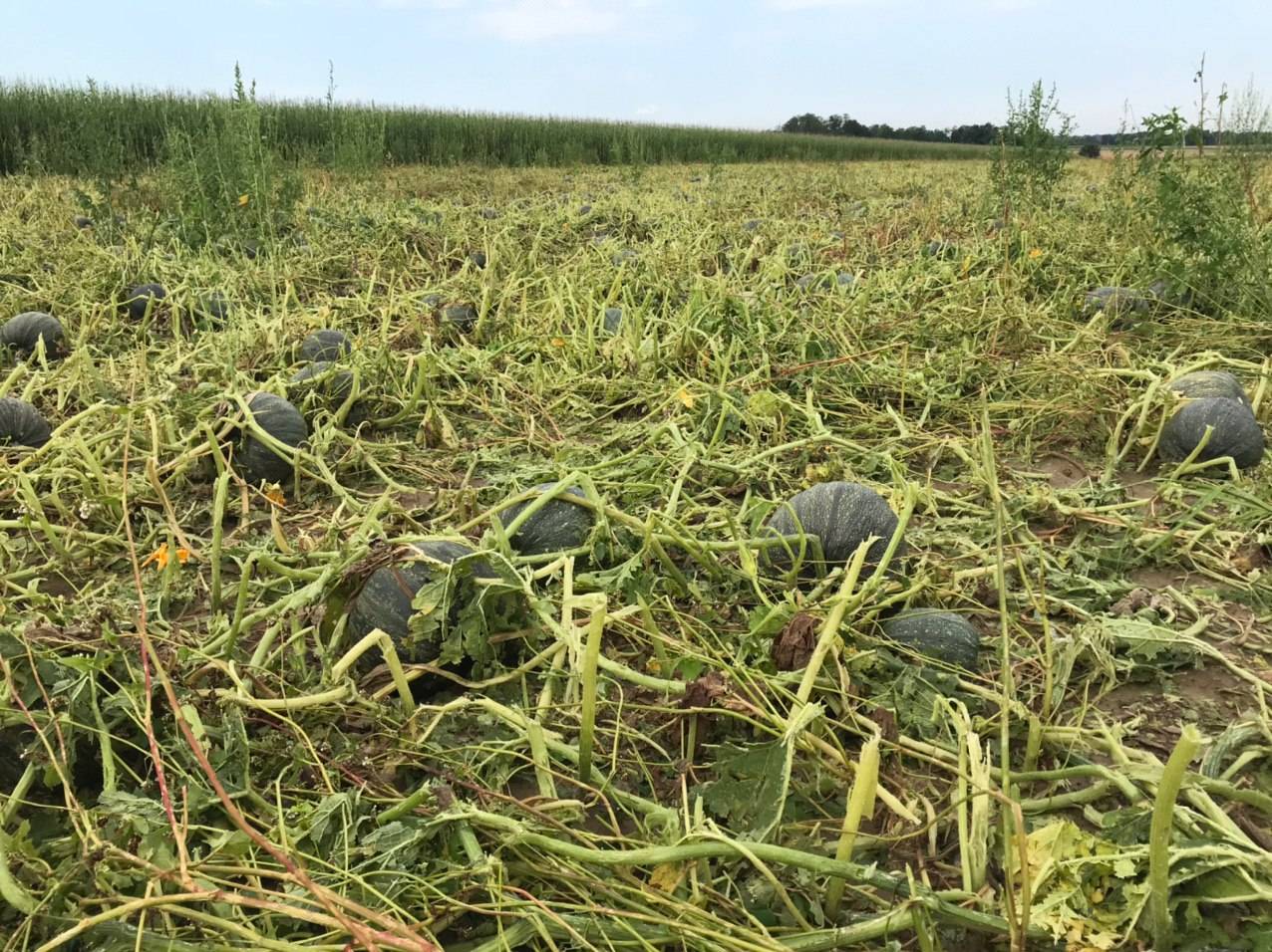 »Najbolj so v včerajšnjem neurju oziroma toči nastradale buče, ki so bile v zaključni fazi rasti. Dobrih 10 do 14 dni pa bi buče zaključile rast. Vprašanje je, kaj bo z bučami, ali je bil udarec tako močan, da bo buča od znotraj gnila,« se sprašuje Franc Küčan iz Tešanovcev.
